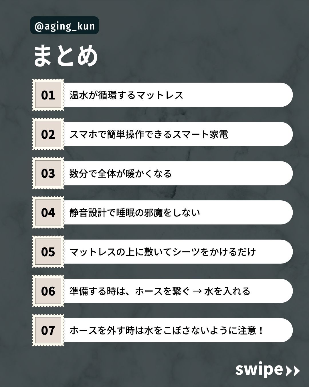 【 @aging_kun / エイジ君】 #PR #インフルエンサーワークス さんから #トレテク! ソフトバンクセレクション @softbank_selection さんの #睡眠グッズ をいただきました! スリープテックブランド 8H(ハチエイチ)さんの温水が循環する #温活 マットレスです。 私は、北側の部屋で窓際に布団があるため、今までは暖房をつけたり湯たんぽを入れたり試行錯誤してきました。 暖房を入れると空気が乾燥したり、湯たんぽは低温やけどの危険性があったりと心配事も多かったのですが、 こちらは #睡眠 の邪魔をしない静かな設計だし、すぐに暖かくなるので寝る直前にオンにすればいいのでとっても便利です。 #睡眠の質 を下げないように睡眠時間の経過に応じてマットレスパッドの温度を自動的に変化させる機能もあり いつでも #快眠 あらたためてスマート家電の良さを実感しました!日中は暖かくなってきましたが、まだ朝晩は寒いので毎日重宝しています! #睡眠を改善 _______________________________________ SLEEP スマート温水マットレスパッド 8H 27,280円(税込)/ 台 _______________________________________ 最後まで読んでいただきありがとうございます。 こちら( @aging_kun )のアカウントでは 実際に使ってみてオススメしたいコスメや美容にまつわる情報を発信していきます。 #LIPSHOMME #LIPSパートナー