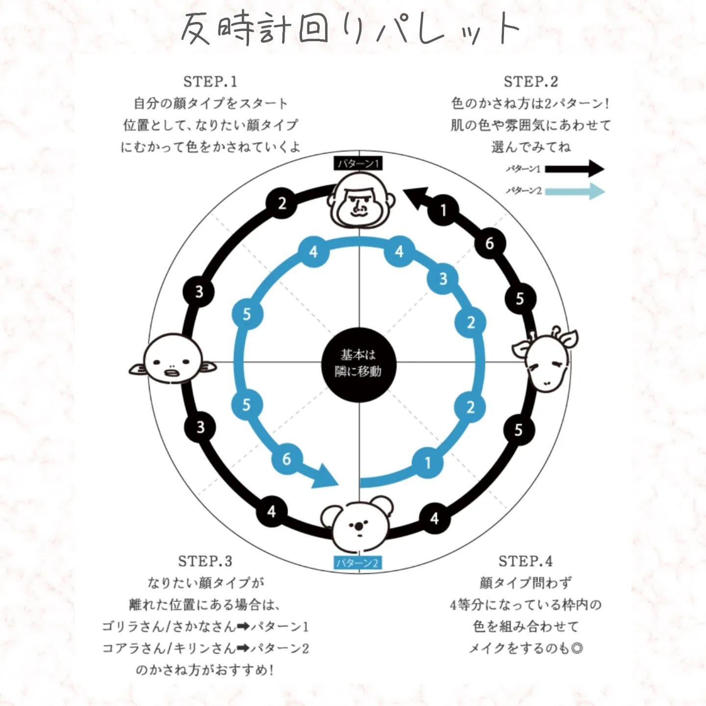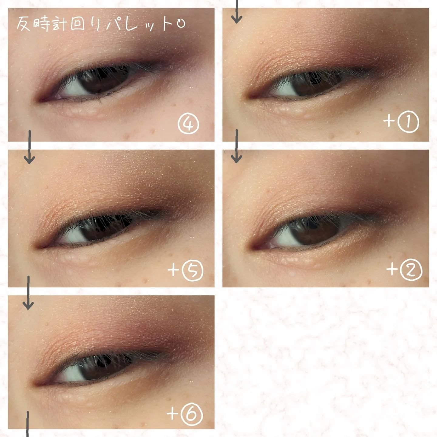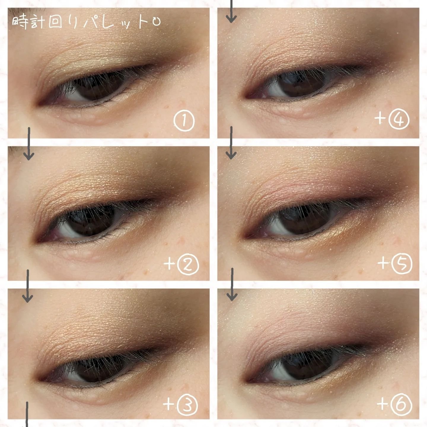 6色の中から、時計回り、反時計回りに4色を重ねるとおしゃれな目元になる!というパレットです。 重ねることで深みが増して、可愛い&ミステリアスな目元に仕上がる素敵なパレットです。 WHOMEEの商品は質感がデパコス級!粉の触り心地が良く、指で塗るのが楽しい♡