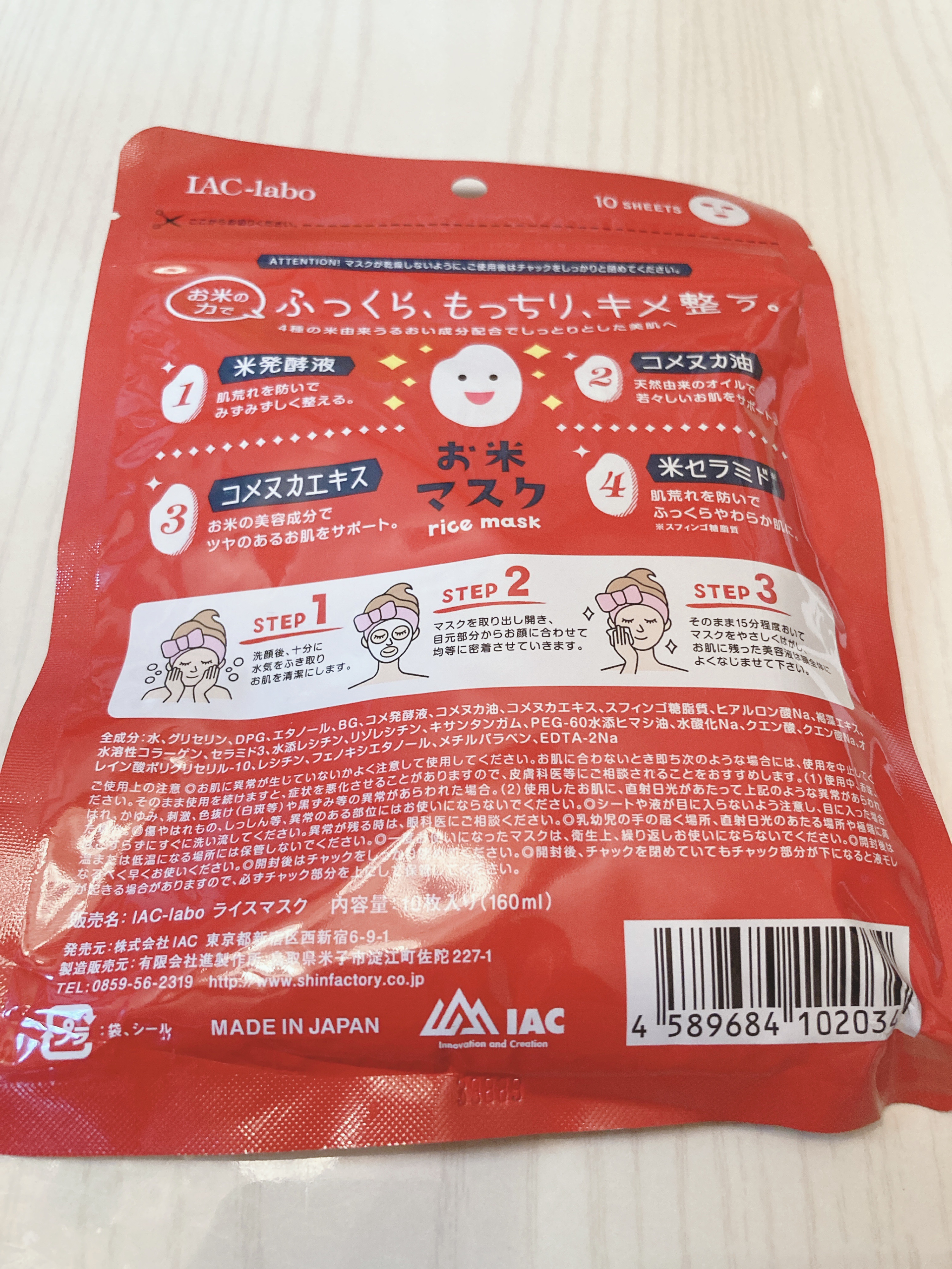 IAC-labo お米マスクの大容量タイプ!成分とか魅力的過ぎた!しかも値段!509円でした! 大容量でこの値段ならいいね!❤ パックがたくさんなのでまた終わって使い始めたらレビューしたいです✨