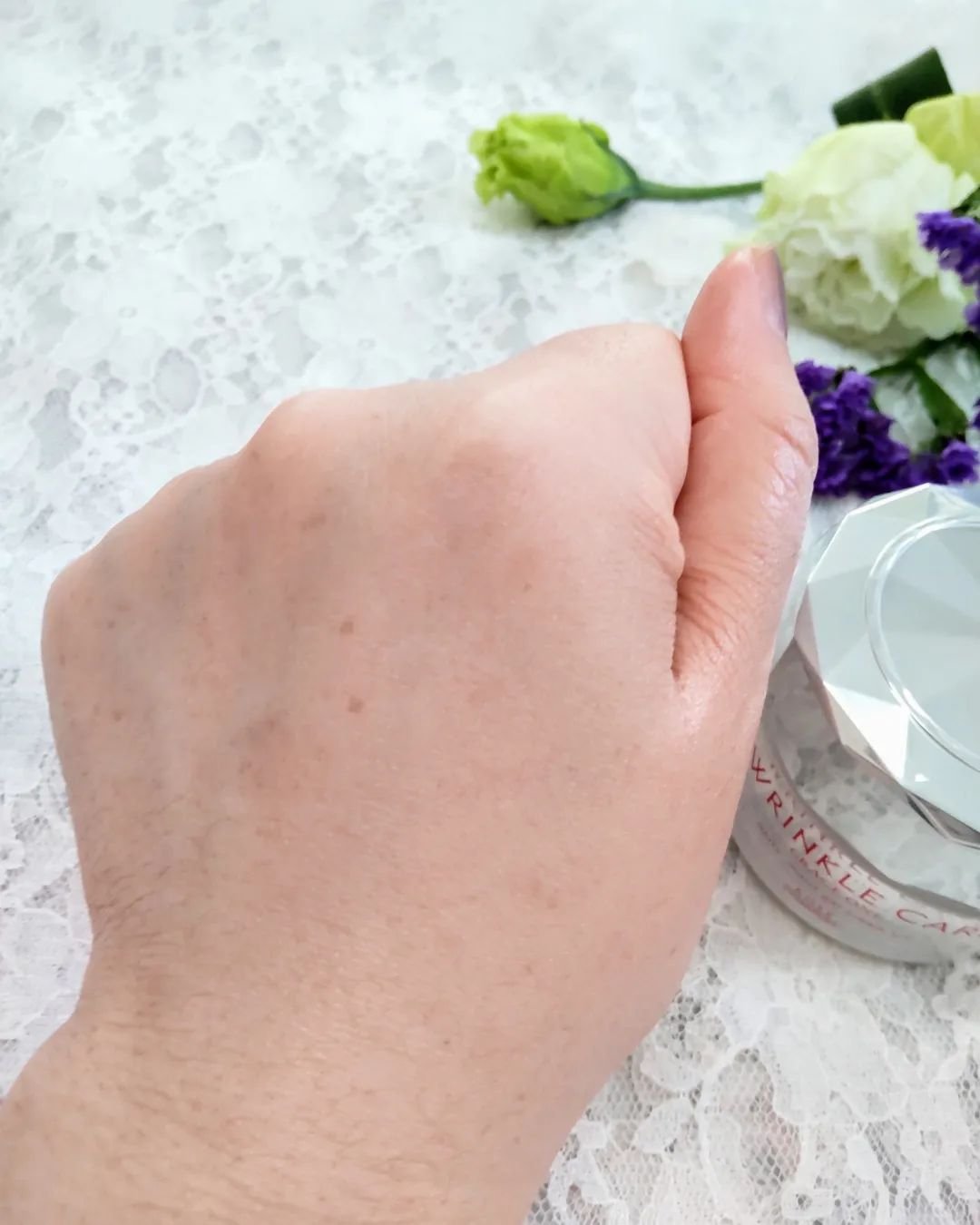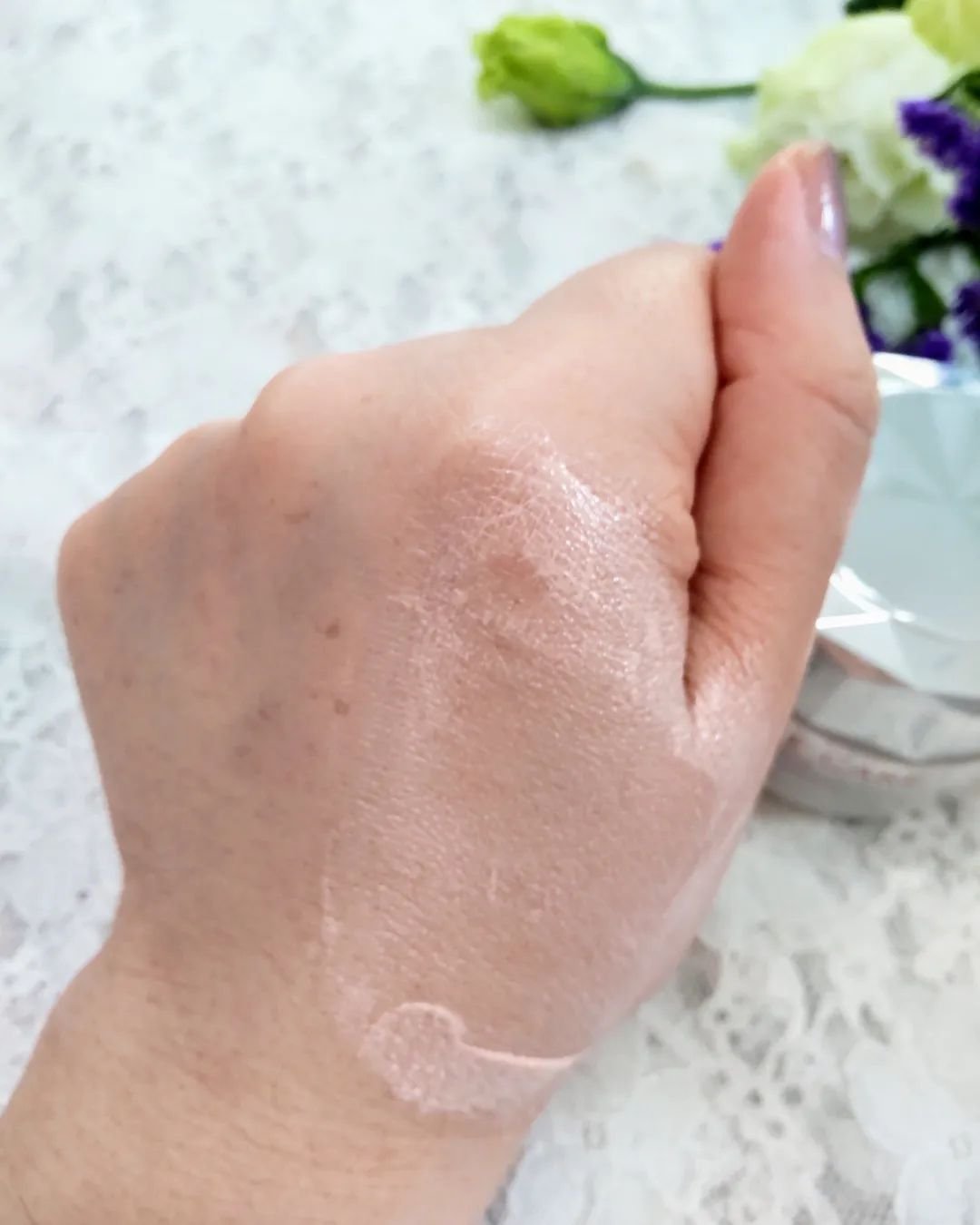 濃くなるシミもケアする シワ改善×美白のオールインワン! しわや美白ケアができるオールインワンジェル、忙しい朝に使いました。 手のひらに取ると、滑らかなテクスチャーです。