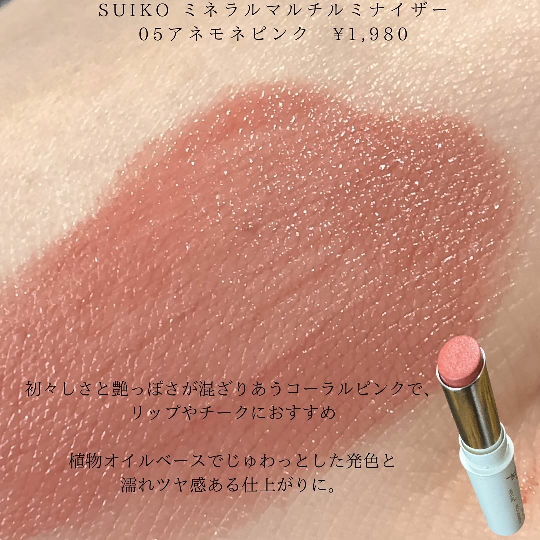 Suikoでモカメイク♡SUIKOミネラルマルチカラー10ロゼブラウンとミネラルマルチルミナイザー05アネモネピンクエアリーオーラプロテクションロゼ、ルミナスヴェールファンデーションをスウォッチ✨🌸Suikoミネラルマルチカラー10ロゼブラウ...