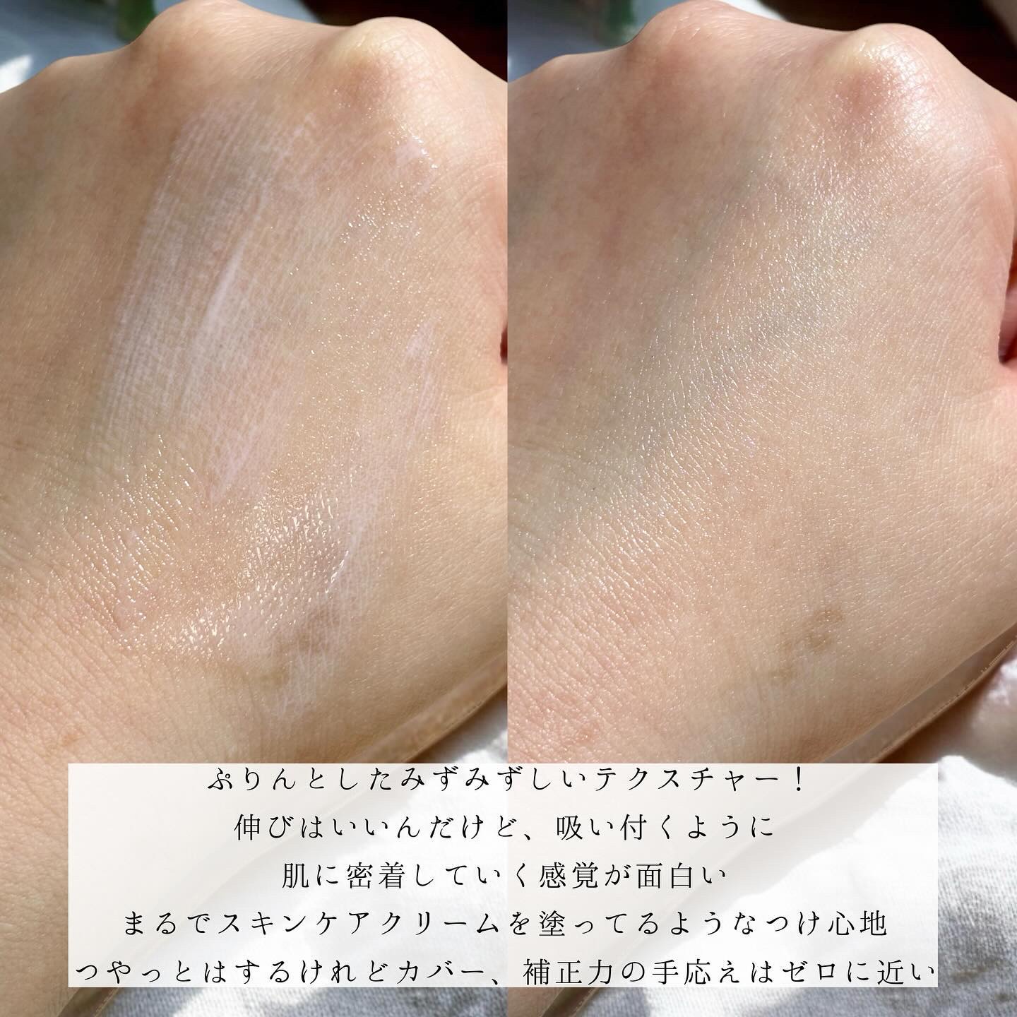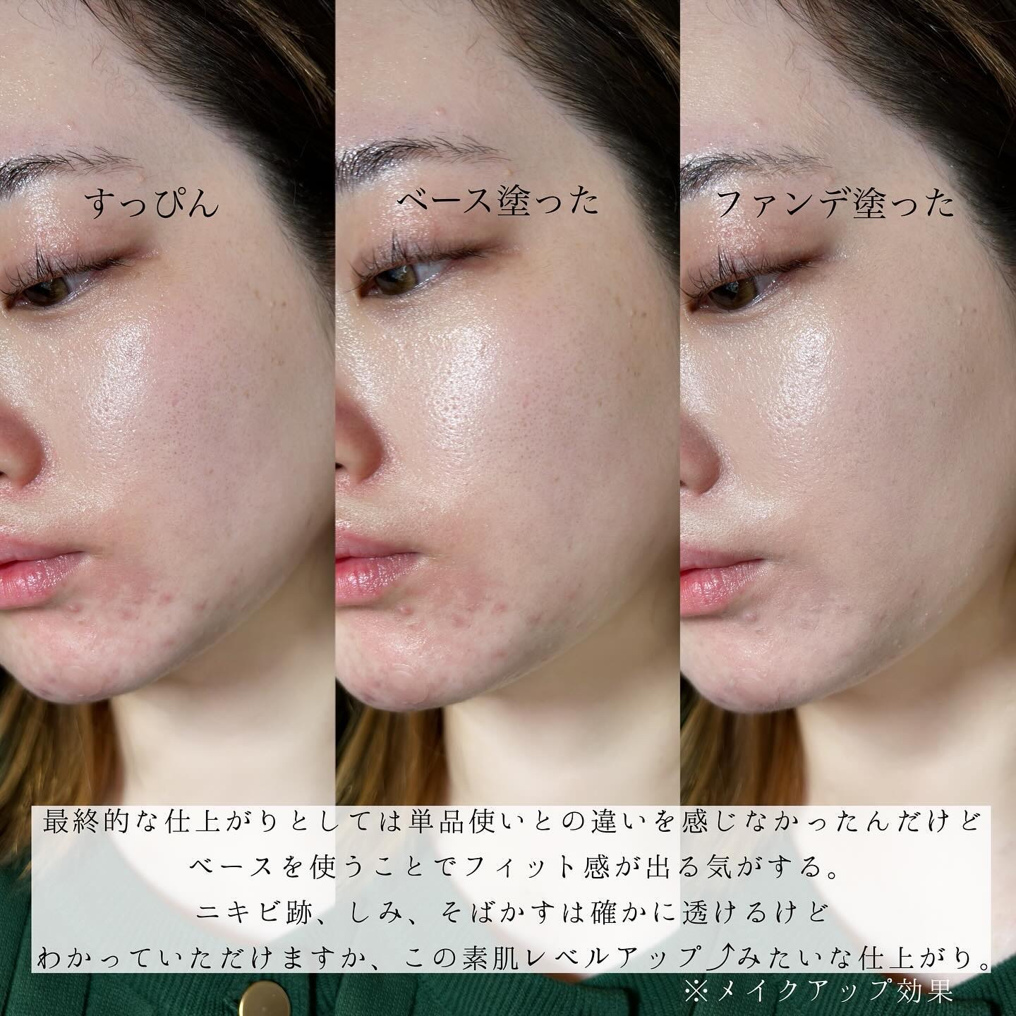 素肌感は欲しいけどカバーもしたいって相談したらおすすめされた下地☝️ 価格は少しお高めなんだけど少しの量で伸びがいいからコスパは◎ しかもスキンケア成分約75%配合!バズりファンデと同じく自然なツヤ感があるから