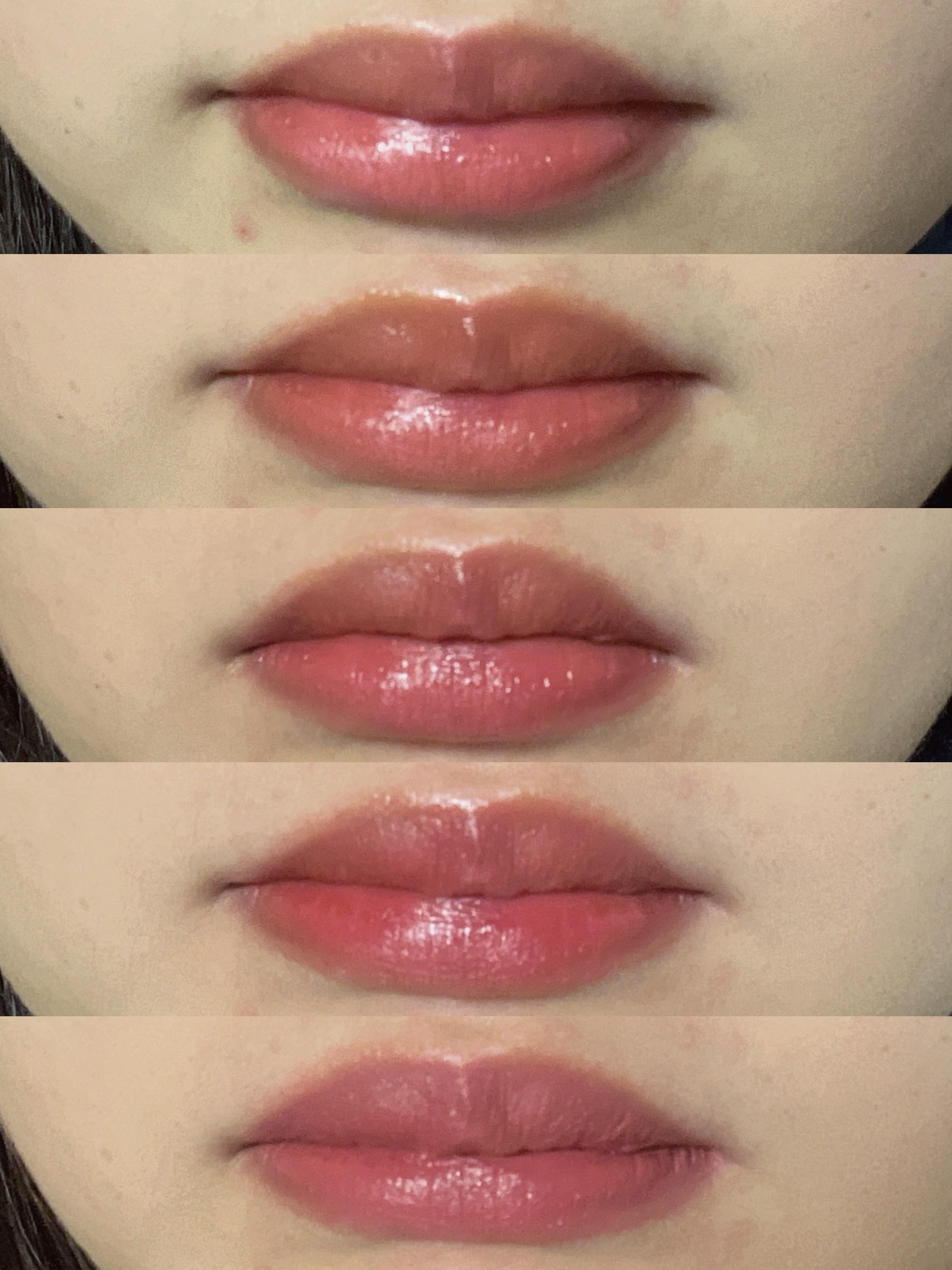 ドレッサーを整理して使っていないリップを手放すことにしました👋(追記Lakaの101ジョイフルMAYBELLINE の65スモーキーピンクはまだ残してます💦) せっかくなので最後にスウォッチを残しておこうかと思います 3、6枚目がティッシュオフした時の様子です。