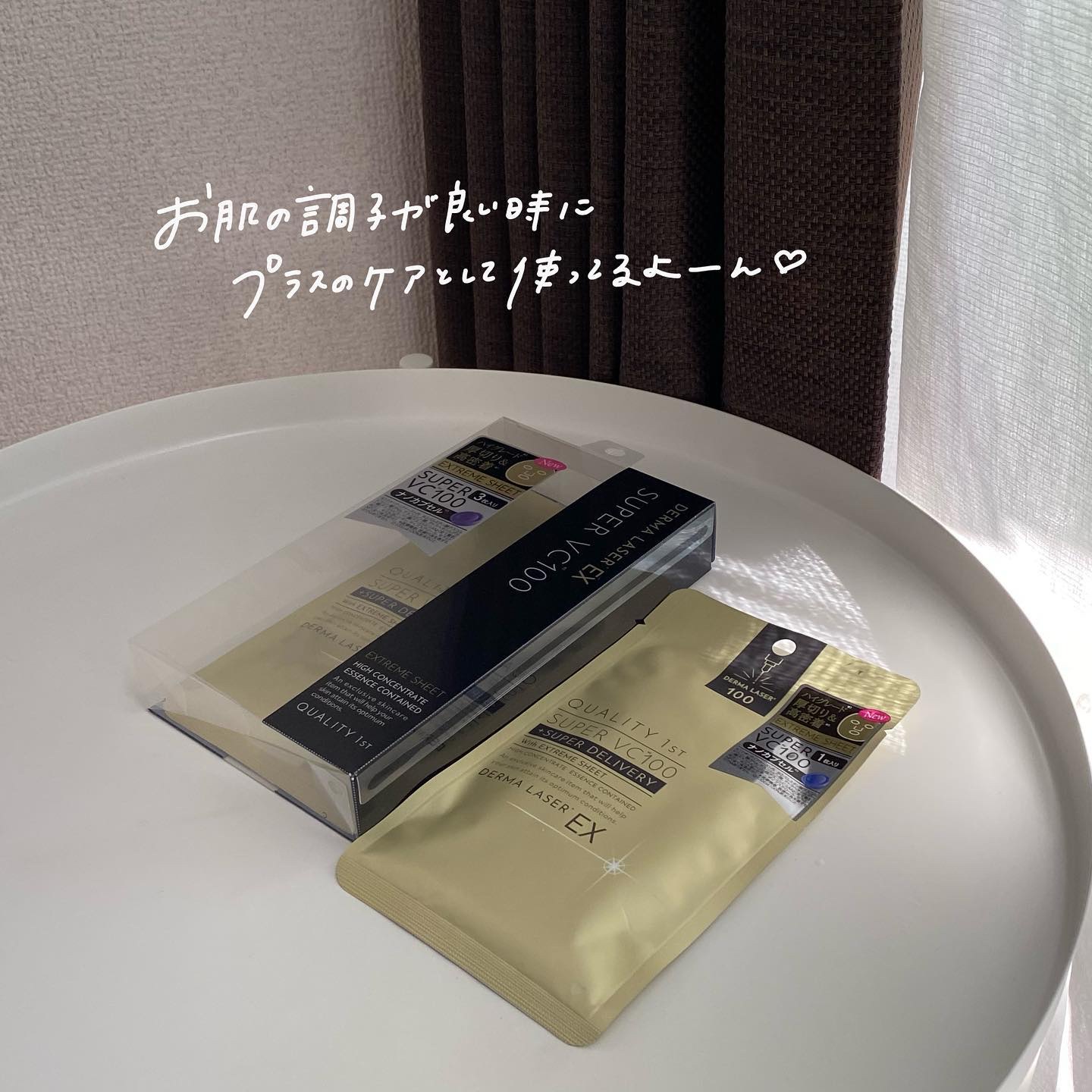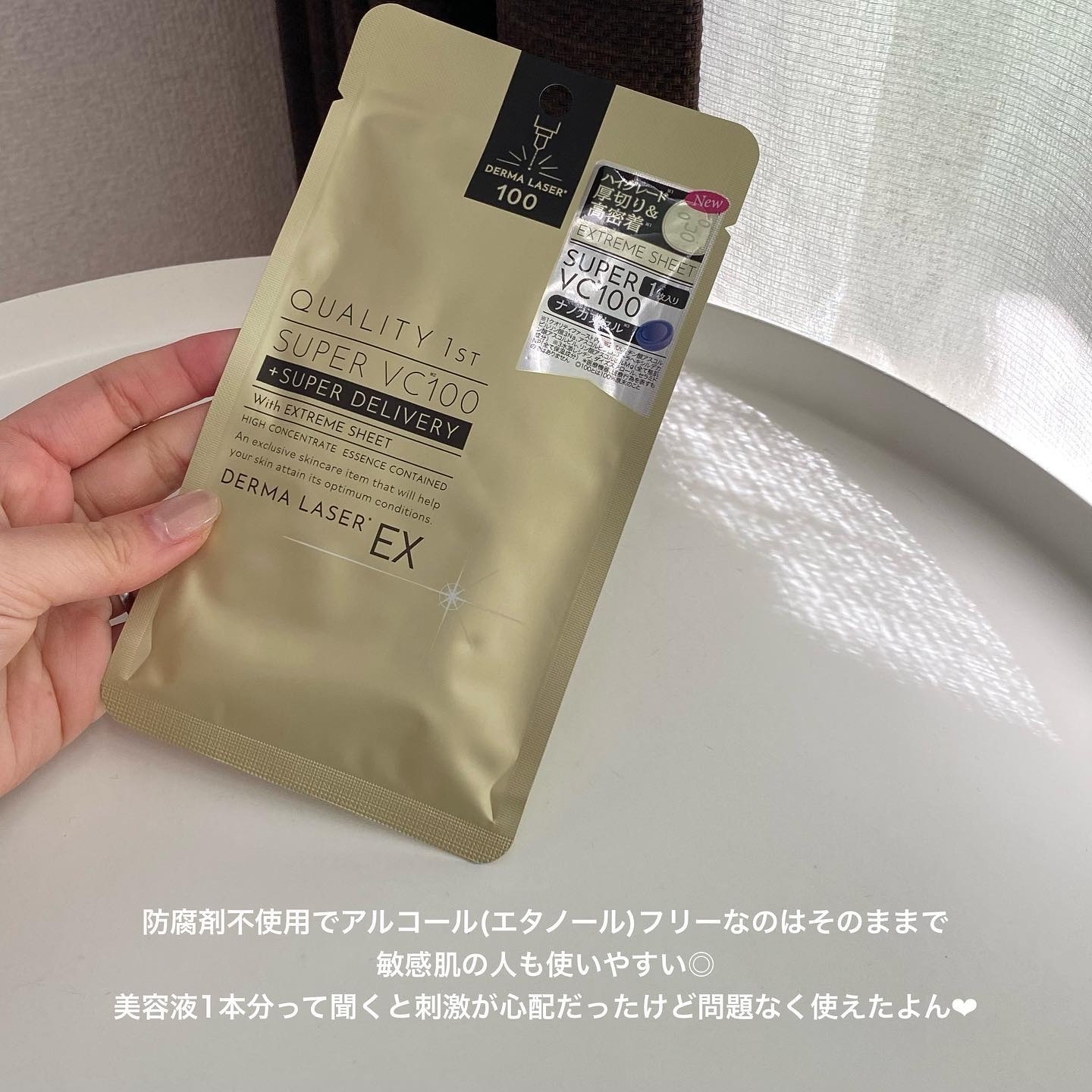 クオリティファーストダーマレーザーEXスーパーVC100マスク4種のビタミンC*で集中毛穴**ケア🫧スーパーVC100マスクと美容液は同じだけど1枚に35mlも含んでて3層構造の厚手シートが密着感あって◎透け感のないエクストリームシートで厚み...