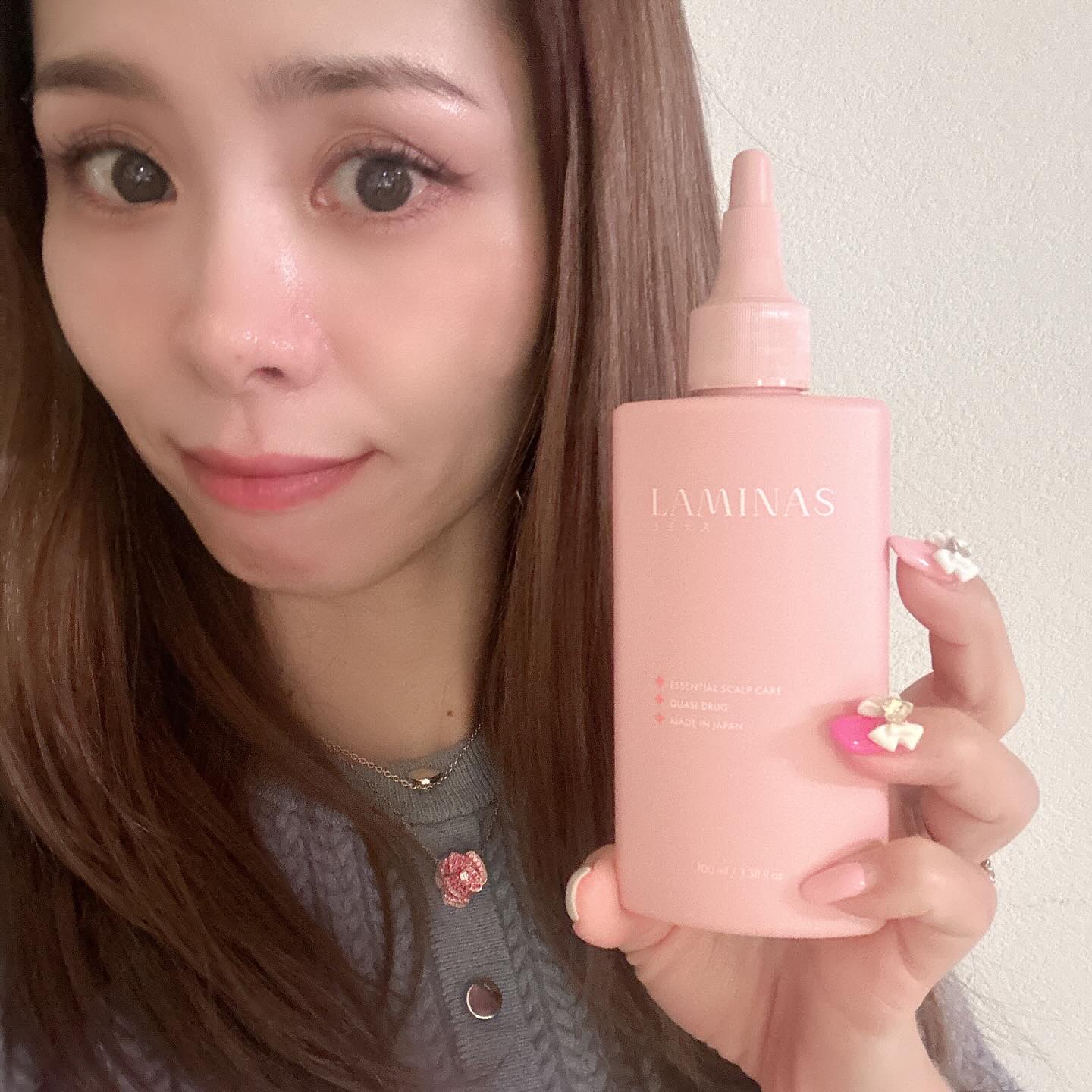 ピンクボトルが可愛いLAMINAS 水っぽいテクスチャーでストレスもなくぬれるよ! こういう育毛系のアイテムはベタつくやつも多いけど そんなことないから嬉しい!おすすめ🫷