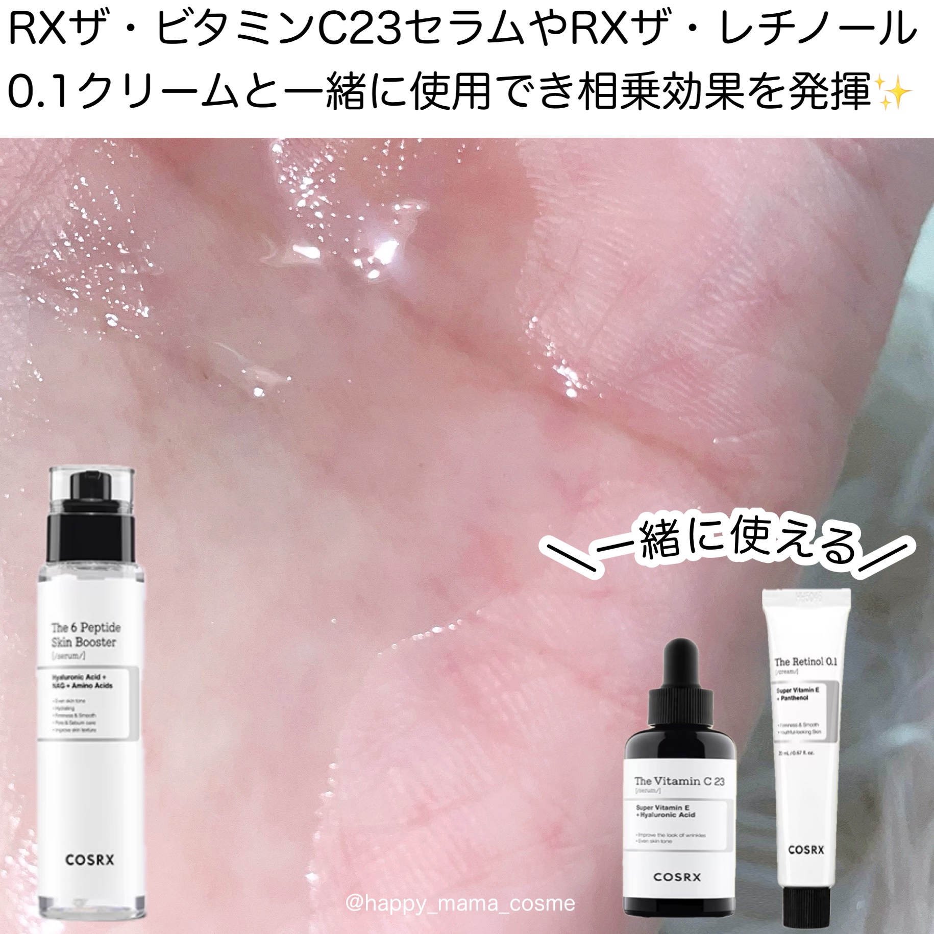COSRXRXThe6PeptideSkinBoosterSerum♡(RXザ・6ペプチドスキンブースターセラム)6種類の多機能ペプチドが様々な肌悩みを効果的にケアするブースターセラム💖洗顔後すぐの肌に使うよ!プッシュタイプで出しやすい。さら...