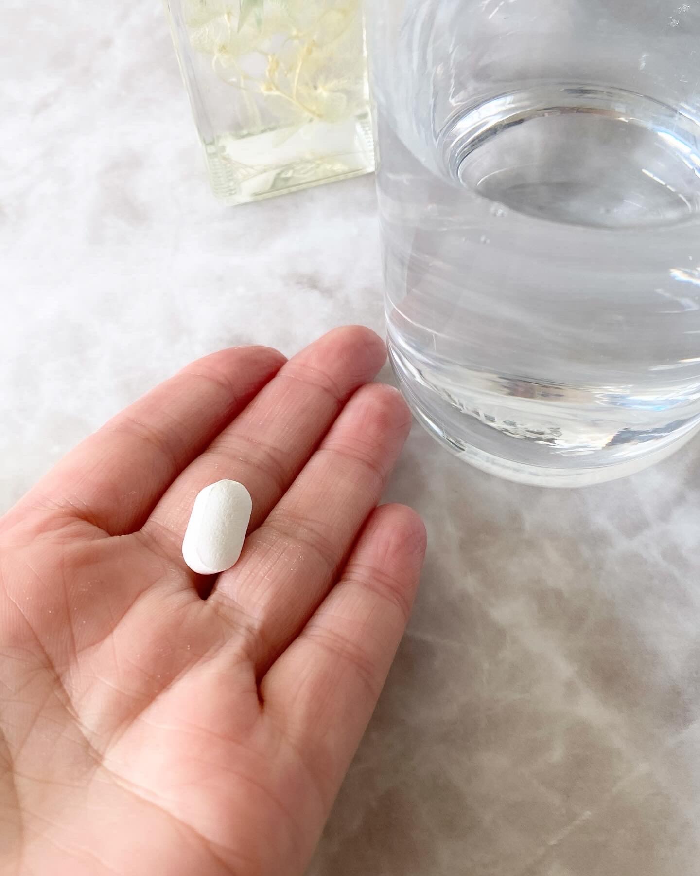 韓国で人気の美容サプリ🇰🇷 約1ヶ月分なので容器はけっこう小さめ! ヒアルロン酸、グルタチオン、NMN。ビタミンC、Lーシスチン、エラスチン、コラーゲン、ミルクセラミド、ドクダミエキス粉末まで配合🙌 香りや味はせず、継続して飲みやすいです🙆