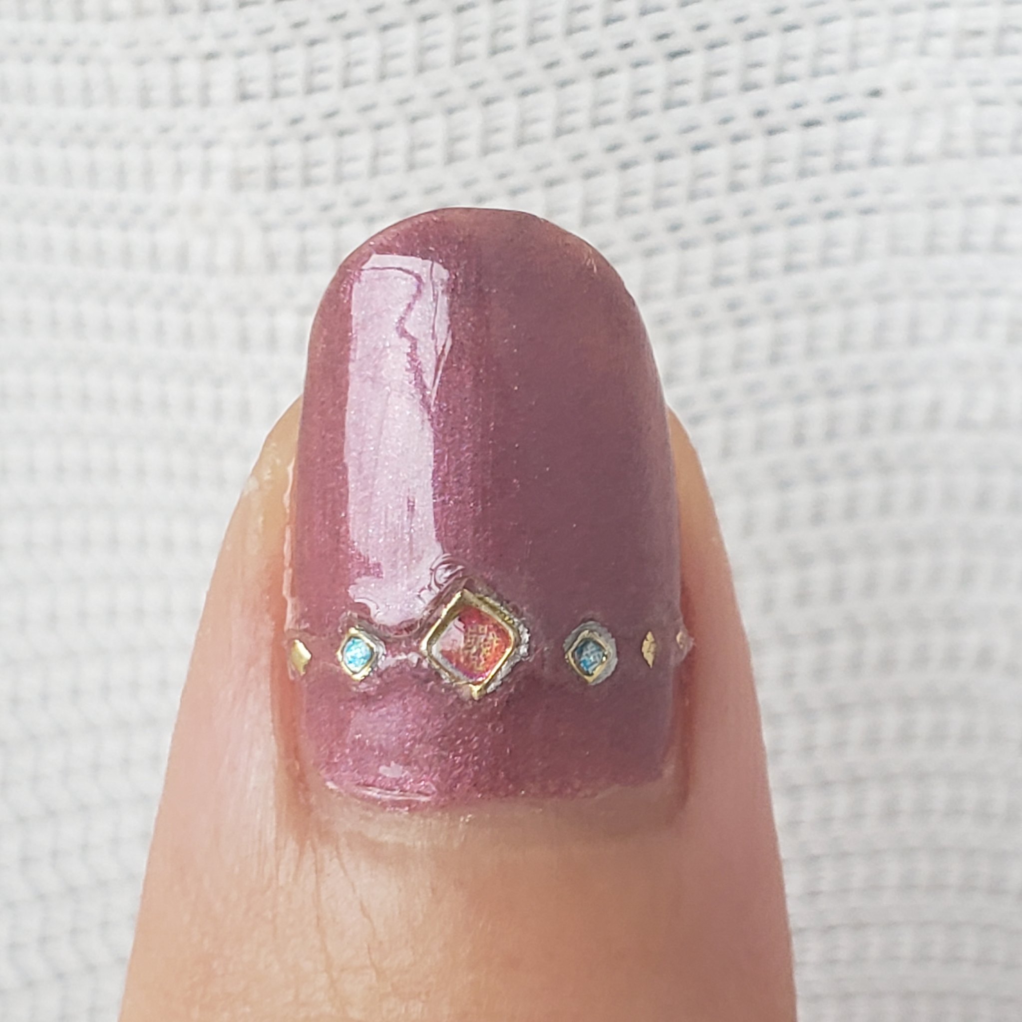 日曜日のネイル💅 くすみピンクにキラキラのラメを添えて、 シンプルだけど綺麗なネイル。 ✼••┈┈••✼••┈┈••✼••┈┈••✼••┈┈••✼ 【使ったもの】 パラドゥミニネイル PK11 ピンクステラ パラドゥミニネイル GD02 ムーングリッター paプラス ピールオフベースコート plus05 ネイリスト クイッククリスタルコートⅡ ネイルシール(SHEINにて購入) 【やり方】 1.パラドゥミニネイル PK11 ピンクステラを2度塗り 2.親指と中指にシールを貼る 3.シールを貼らない指はパラドゥミニネイル GD02 ムーングリッターを根元あたりに少し塗る 4.トップコートで仕上げ ✼••┈┈••✼••┈┈••✼••┈┈••✼••┈┈••✼ シールを使いたくてやってみたんだけど、 肝心のシールが劣化してて 半日もしないうちに剥がれてしまった💧 古いシールはダメなんだなぁ… もったいないけど、諦めて捨てよう。 さて、コロナから復活して、今日から職場復帰! 休んだ分がんばらなきゃと思いつつ、 体のだるさに負けそう。 #セルフネイル #ネイル記録