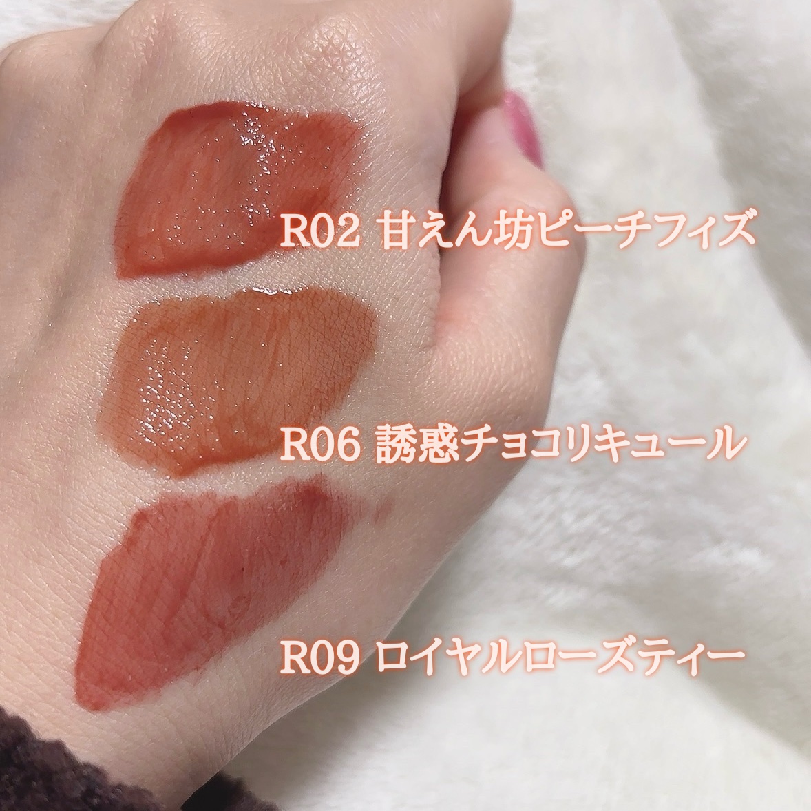 - R01 一目惚れアマレットジンジャー 水、ジフェニルジメチコン、ビスジグリセリルポリアシルアジペート-2、リンゴ酸ジイソステアリル、オクチルドデカノール、水添ポリイソブテン、ダイマージリノール酸ダイマージリノレイルビス(ベヘニル/イソステアリル/フィトステリル)、グリセリン、ジメチコン、セチルPEG/PPG-10/1ジメチコン、DPG、イソステアリン酸ソルビタン、ポリソルベート60、ペンチレングリコール、(ジメチコン/ビニルジメチコン)クロスポリマー、(アクリル酸ヒドロキシエチル/アクリロイルジメチルタウリンNa)コポリマー、セテアレス-20、スクワラン、フェノキシエタノール、酸化チタン、ミリスチン酸ポリグリセリル-10、黄5、BG、香料、エチルヘキシルグリセリン、赤227、青1、アルギニン、カルボマー、オニユリエキス、モモ果実エキス R02 甘えんぼピーチフィズ 水、ジフェニルジメチコン、ビスジグリセリルポリアシルアジペート-2、リンゴ酸ジイソステアリル、オクチルドデカノール、水添ポリイソブテン、ダイマージリノール酸ダイマージリノレイルビス(ベヘニル/イソステアリル/フィトステリル)、グリセリン、ジメチコン、セチルPEG/PPG-10/1ジメチコン、DPG、イソステアリン酸ソルビタン、ポリソルベート60、ペンチレングリコール、(ジメチコン/ビニルジメチコン)クロスポリマー、(アクリル酸ヒドロキシエチル/アクリロイルジメチルタウリンNa)コポリマー、セテアレス-20、スクワラン、フェノキシエタノール、ミリスチン酸ポリグリセリル-10、BG、酸化チタン、香料、黄5、エチルヘキシルグリセリン、赤227、赤104(1)、青1、アルギニン、カルボマー、オニユリエキス、モモ果実エキス R03 わがままロゼワイン 水、ジフェニルジメチコン、ビスジグリセリルポリアシルアジペート-2、リンゴ酸ジイソステアリル、オクチルドデカノール、水添ポリイソブテン、ダイマージリノール酸ダイマージリノレイルビス(ベヘニル/イソステアリル/フィトステリル)、グリセリン、ジメチコン、セチルPEG/PPG-10/1ジメチコン、DPG、イソステアリン酸ソルビタン、ポリソルベート60、ペンチレングリコール、(アクリル酸ヒドロキシエチル/アクリロイルジメチルタウリンNa)コポリマー、(ジメチコン/ビニルジメチコン)クロスポリマー、セテアレス-20、スクワラン、フェノキシエタノール、ミリスチン酸ポリグリセリル-10、BG、香料、黄5、赤227、エチルヘキシルグリセリン、青1、アルギニン、カルボマー、オニユリエキス、モモ果実エキス R04 いたずらカシスコーク 水、ジフェニルジメチコン、ビスジグリセリルポリアシルアジペート-2、リンゴ酸ジイソステアリル、オクチルドデカノール、水添ポリイソブテン、ダイマージリノール酸ダイマージリノレイルビス(ベヘニル/イソステアリル/フィトステリル)、グリセリン、ジメチコン、セチルPEG/PPG-10/1ジメチコン、DPG、イソステアリン酸ソルビタン、ポリソルベート60、ペンチレングリコール、(ジメチコン/ビニルジメチコン)クロスポリマー、(アクリル酸ヒドロキシエチル/アクリロイルジメチルタウリンNa)コポリマー、セテアレス-20、スクワラン、黄5、フェノキシエタノール、ミリスチン酸ポリグリセリル-10、酸化チタン、赤227、BG、香料、エチルヘキシルグリセリン、青1、アルギニン、カルボマー、オニユリエキス、モモ果実エキス R05 気ままチェリーブランデー 水、ジフェニルジメチコン、ビスジグリセリルポリアシルアジペート-2、リンゴ酸ジイソステアリル、オクチルドデカノール、水添ポリイソブテン、ダイマージリノール酸ダイマージリノレイルビス(ベヘニル/イソステアリル/フィトステリル)、グリセリン、ジメチコン、セチルPEG/PPG-10/1ジメチコン、DPG、イソステアリン酸ソルビタン、ポリソルベート60、ペンチレングリコール、(ジメチコン/ビニルジメチコン)クロスポリマー、(アクリル酸ヒドロキシエチル/アクリロイルジメチルタウリンNa)コポリマー、セテアレス-20、スクワラン、酸化チタン、フェノキシエタノール、ミリスチン酸ポリグリセリル-10、黄5、BG、香料、赤227、エチルヘキシルグリセリン、黄4、青1、アルギニン、カルボマー、オニユリエキス、モモ果実エキス R06 誘惑チョコリキュール 水、ジフェニルジメチコン、ビスジグリセリルポリアシルアジペート-2、リンゴ酸ジイソステアリル、オクチルドデカノール、水添ポリイソブテン、ダイマージリノール酸ダイマージリノレイルビス(ベヘニル/イソステアリル/フィトステリル)、グリセリン、ジメチコン、セチルPEG/PPG-10/1ジメチコン、DPG、イソステアリン酸ソルビタン、ポリソルベート60、ペンチレングリコール、(ジメチコン/ビニルジメチコン)クロスポリマー、(アクリル酸ヒドロキシエチル/アクリロイルジメチルタウリンNa)コポリマー、セテアレス-20、スク R07 ほろ甘サングリア 水、ジフェニルジメチコン、ビスジグリセリルポリアシルアジペート-2、リンゴ酸ジイソステアリル、オクチルドデカノール、水添
