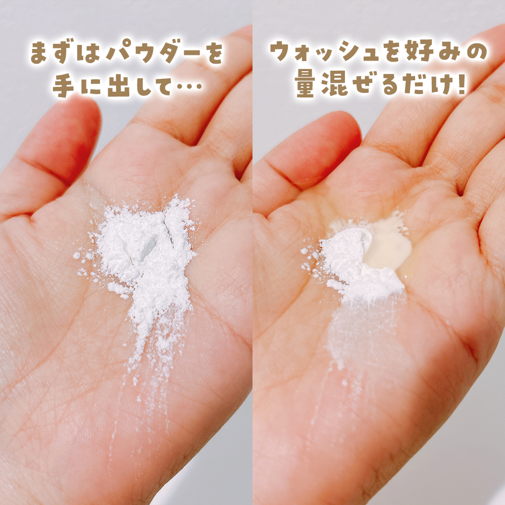 - リキッドタイプのウォッシュとパウダーを混ぜて使用する、泡の立たないマイルドな洗顔料。つっぱり感が少なく、すべすべでなめらかな洗い上がりです。肌に優しい使い心地で、古い角質や汚れを穏やかに取り除きます。小鼻の周りなど、ザラつきが気になる部分には顔全体にウォッシュ&パウダーを伸ばした後、さらにパウダーで洗うと、すべすべ肌に。必要なうるおいを残しながら毛穴に詰まった汚れまでしっかりと落とします。 ■ウォッシュ/無着色・無鉱物油・オイルフリー ■パウダー/無香料・無着色・無鉱物油