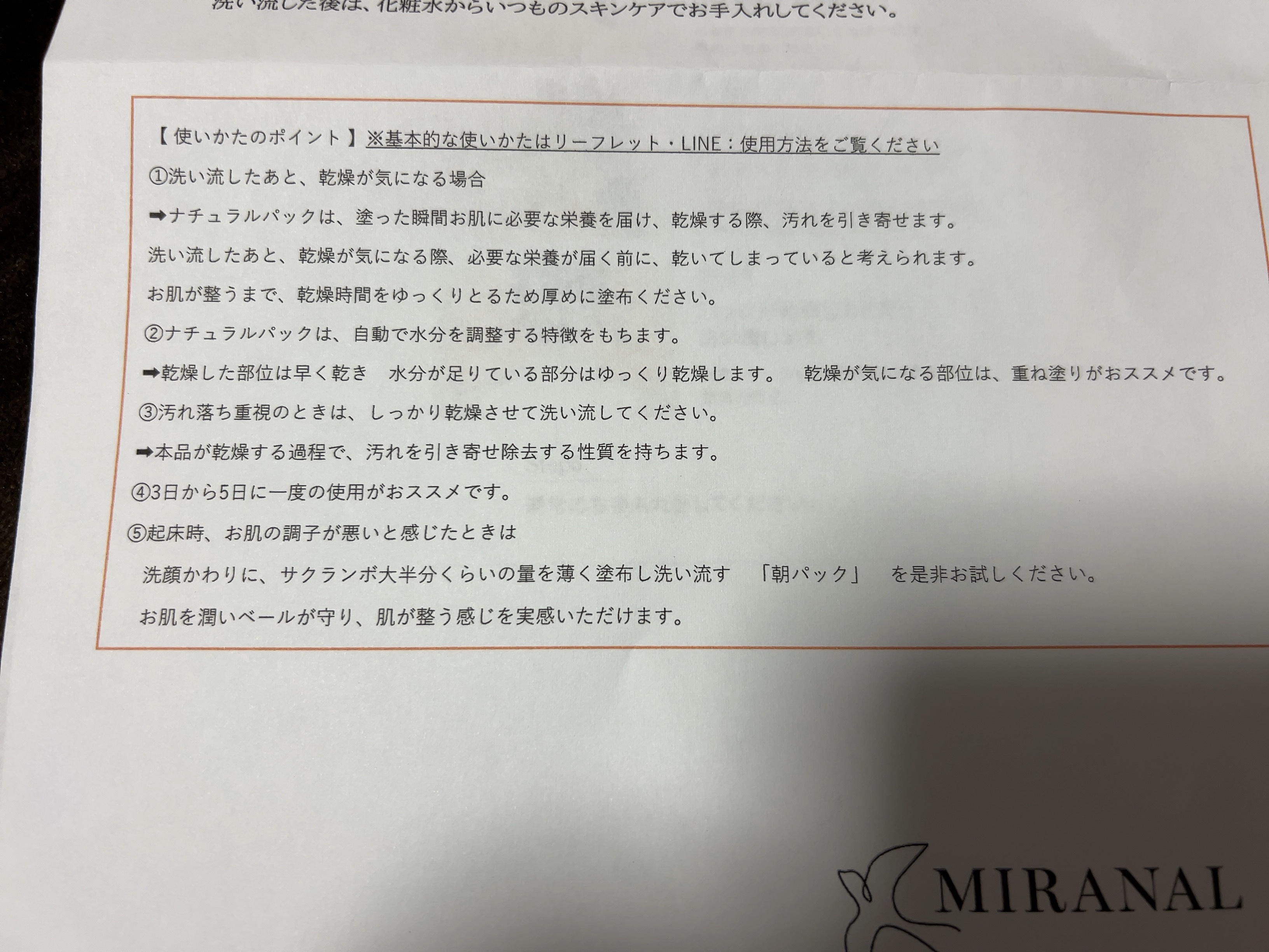 商品詳細情報MIRANAL ナチュラルパック