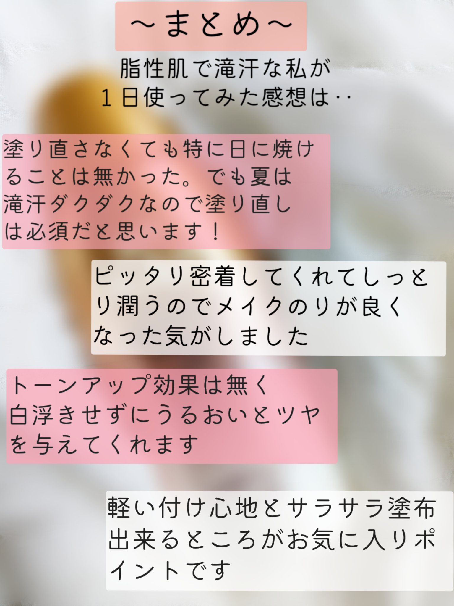 | 日焼け止め・UVケアランキング第45位 | しっとりするようなつけ心地で 乾燥を防いでくれそうな使用感でした◎ | 詳細を見る | |