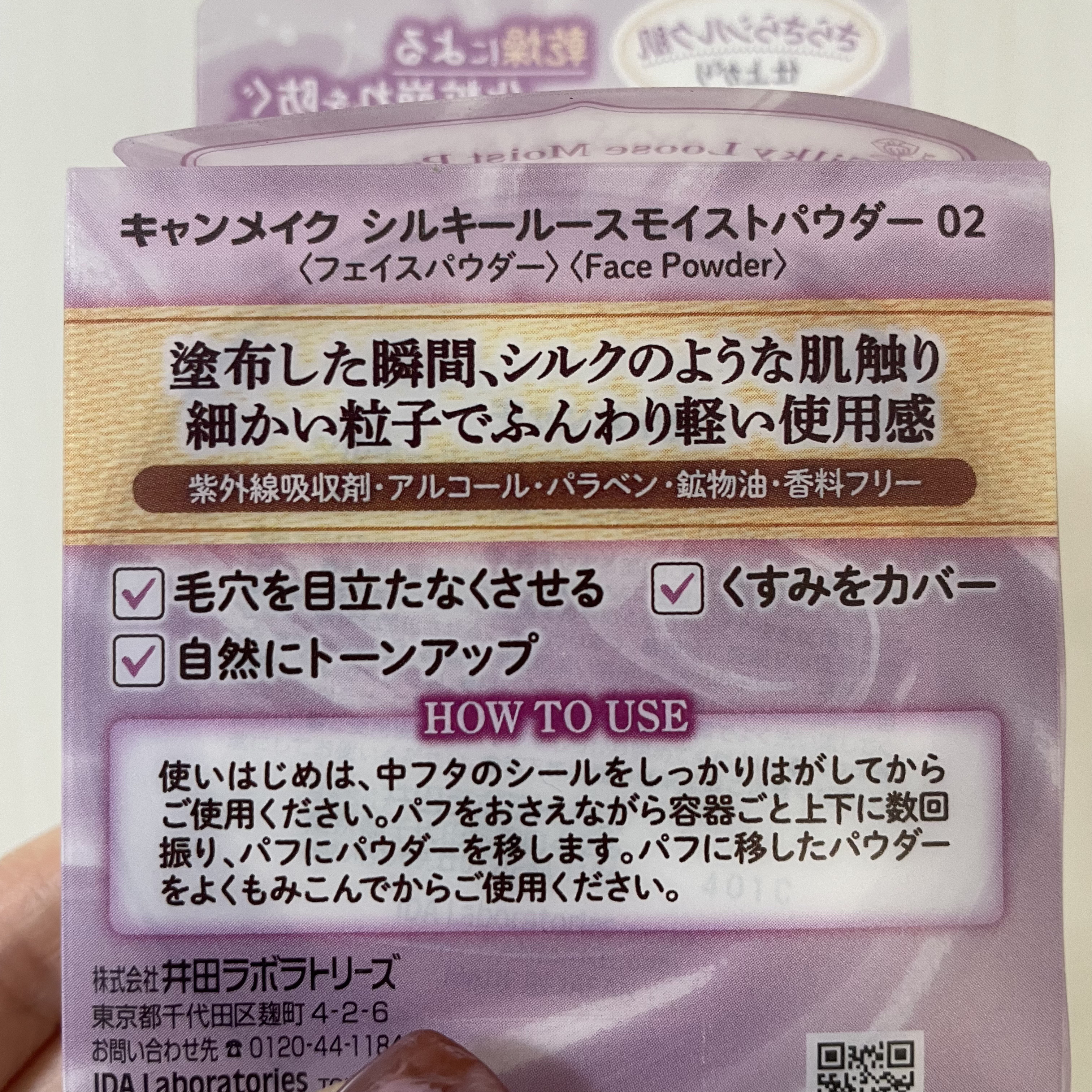 #購入品キャンメイクシルキールースモイストパウダー02シアーラベンダー自然なラベンダーのパウダーでトーンアップする感じが好きで使っています。しっとりしているので乾燥しずらく崩れ方も割ときれいなのでキャンメイクのパウダーの中だとこちらのシリーズ...