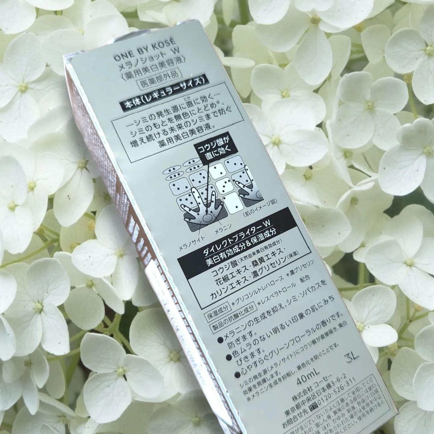 ワンバイコーセーさまからいただきましたワンバイコーセーのメラノショットWは、増え続ける未来のシミまで防ぐ美白美容液。天然由来の美白有効成分「コウジ酸」がメラノサイトに直に効き、メラニンの生成を抑制してくれるそう!💠メラノショットW有効成分であ...