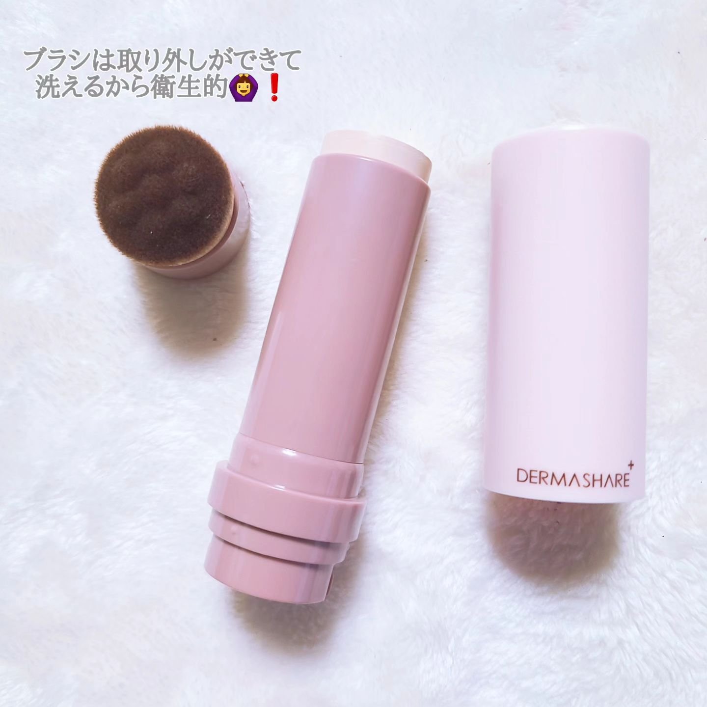 - 「こんなの欲しかった!」 ブラシ一体型の新感覚スティックファンデーション 素肌をアップデートした自然な美肌に。 ブラシ付きでいつでもどこでも簡単きれいに仕上がるきれいのお守り「スティックファンデーション」 point1:ブラシ一体型のスティックファンデーション持ち運びに便利なスティックタイプ。 ブラシ付きで手を汚さず簡単にベースメイクを仕上げることができます。ブラシは取り外し可能で交換・洗浄ができ、衛生的です。 point2:7万本の極細毛ブラシで完成度の高いメイクが実現!立体型の肉球ブラシがお肌の凹凸に合わせて密着し、小鼻や毛穴の気になる部分もムラなくきれいに仕上げることができます。 point3:紫外線ダメージによる乾燥、大気汚染などの外的刺激からお肌を守る植物エキス*配合 *カンゾウ根エキス、ドクダミエキス、オウゴン根エキス、アイブライトエキス(全て保湿成分)