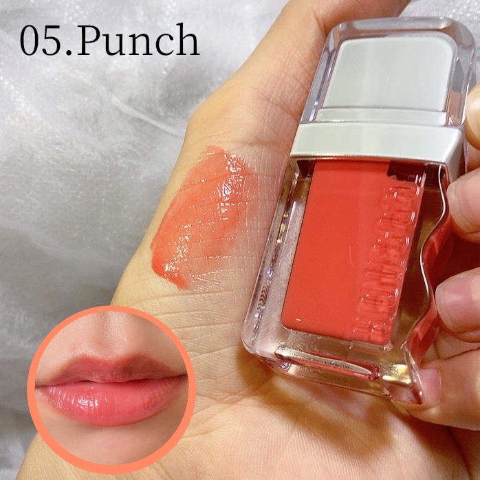 - <01 ソフィー(Surfy)> リンゴ酸ジイソステアリル、ジフェニルシロキシフェニルトリメチコン、精製水、ジフェニルジメチコン、ビスジグリセリルポリアシルアジペート-2、水添ポリイソブテン、ポリグリセリン-3、ポリソルベート60、セチルPEG/PPG-10/1ダイメチコン、イソステアリン酸ソルビタン、BG、ペンチレングリコール、1,2-ヘキサンジオール、ダイメジメチコン、アクリル酸ヒドロキシエチル/ナトリウムアクリロイルジメチルタウリン酸共重合体スクアラン、セテアレス-20、二酸化チタン、エチルヘキシルグリセリン、赤色227号、黄色5 号、香料、赤色104号(1)、水酸化酸化アルミニウム、ポリアクリル酸アンモニウム溶液、黄色4号、フェノキシエタノール、マカデミア種子油、ローズヒップ油、ツバキ油、トコフェロール <02 ピンクラッシュ(Pinkrush)> リンゴ酸ジイソステアリル、ジフェニルシロキシフェニルトリメチコン、精製水、ビスジグリセリルポリアシルアジペート-2、ジフェニルジメチコン、水添ポリイソブテン、ポリグリセリン-3、ポリソルベート60、セチルPEG/PPG-10/1ダイメチコン、イソステアリン酸ソルビタン、BG、ダイメジメチコン、ペンチレングリコール、1,2-ヘキサンジオール、アクリル酸ヒドロキシエチル/ナトリウムアクリロイルジメチルタウリン酸共重合体スクアラン、セテアレス-20、二酸化チタン、エチルヘキシルグリセリン、赤色227号、黄色5 号、香料、水酸化酸化アルミニウム、ポリアクリル酸アンモニウム溶液、フェノキシエタノール、マカデミア種子油、ローズヒップ油、ツバキ油、トコフェロール <03 グレア(Glare) > リンゴ酸ジイソステアリル、ジフェニルシロキシフェニルトリメチコン、精製水、ビスジグリセリルポリアシルアジペート-2、ジフェニルジメチコン、水添ポリイソブテン、ポリグリセリン-3、ポリソルベート60、セチルPEG/PPG-10/1ダイメチコン、イソステアリン酸ソルビタン、BG、ペンチレングリコール、1,2-ヘキサンジオール、ダイメジメチコン、アクリル酸ヒドロキシエチル/ナトリウムアクリロイルジメチルタウリン酸共重合体スクアラン、セテアレス-20、二酸化チタン、エチルヘキシルグリセリン、黄色5 号、香料、赤色104号(1)、赤色227号、水酸化酸化アルミニウム、ポリアクリル酸アンモニウム溶液、黄色4号、フェノキシエタノール、ブリリアントブルーFCF、マカデミア種子油、ローズヒップ油、ツバキ油、トコフェロール <04 ウィッティー(Witty)> リンゴ酸ジイソステアリル、ジフェニルシロキシフェニルトリメチコン、精製水、ビスジグリセリルポリアシルアジペート-2、ジフェニルジメチコン、水添ポリイソブテン、ポリグリセリン-3、ポリソルベート60、セチルPEG/PPG-10/1ダイメチコン、イソステアリン酸ソルビタン、BG、ダイメジメチコン、ペンチレングリコール、1,2-ヘキサンジオール、アクリル酸ヒドロキシエチル/ナトリウムアクリロイルジメチルタウリン酸共重合体スクアラン、セテアレス-20、二酸化チタン、黄色5 号、赤色227号、エチルヘキシルグリセリン、香料、水酸化酸化アルミニウム、ポリアクリル酸アンモニウム溶液、フェノキシエタノール、マカデミア種子油、ローズヒップ油、ツバキ油、トコフェロール <05 パンチ(Punch)> リンゴ酸ジイソステアリル、ジフェニルシロキシフェニルトリメチコン、精製水、ジフェニルジメチコン、ビスジグリセリルポリアシルアジペート-2、水添ポリイソブテン、ポリグリセリン-3、ポリソルベート60、セチルPEG/PPG-10/1ダイメチコン、イソステアリン酸ソルビタン、BG、ペンチレングリコール、1,2-ヘキサンジオール、ダイメジメチコン、アクリル酸ヒドロキシエチル/ナトリウムアクリロイルジメチルタウリン酸共重合体二酸化チタン、スクアラン、セテアレス-20、黄色5 号、エチルヘキシルグリセリン、香料、赤色227号、赤色104号(1)、水酸化酸化アルミニウム、ポリアクリル酸アンモニウム溶液、フェノキシエタノール、マカデミア種子油、ローズヒップ油、ツバキ油、トコフェロール <06 ディア(Dear)> リンゴ酸ジイソステアリル、ジフェニルシロキシフェニルトリメチコン、精製水、ジフェニルジメチコン、ビスジグリセリルポリアシルアジペート-2、水添ポリイソブテン、ポリグリセリン-3、ポリソルベート60、セチルPEG/PPG-10/1ダイメチコン、イソステアリン酸ソルビタン、BG、ペンチレングリコール、1,2-ヘキサンジオール、ダイメジメチコン、アクリル酸ヒドロキシエチル/ナトリウムアクリロイルジメチルタウリン酸共重合体スクアラン、セテアレス-20、二酸化チタン、エチルヘキシルグリセリン、黄色5 号、赤色227号、香料、水酸化酸化アルミニウム、黄色4号、ポリアクリル酸アンモニウム溶液、フェノキシエタノール、マカデミア種子油、ブリリアントブルーFCF、ローズヒップ油、ツバキ油、トコフェロール <07 カインド(Kind)> リンゴ酸ジイソステアリル、ジフェニルシロキシフェニルトリメチコン、精製水、ジフェニルジメチコン