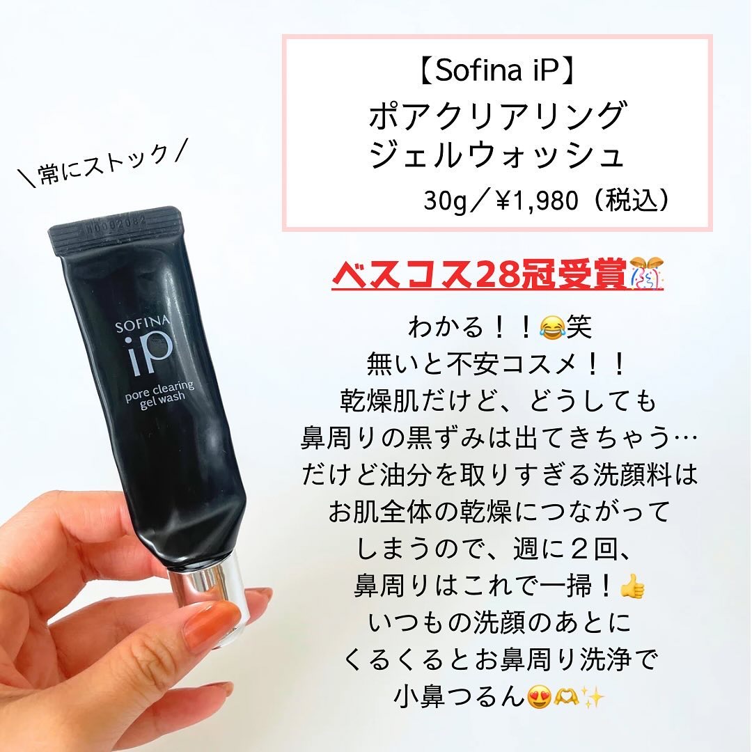 黒ずみの毛穴のケアがしたい!!評価の高いこちら買ってみました🥺✨SOFINAiPのポアクリアリングジェルウォッシュをレビューしたいと思います٩(´ω`)و週2回たったの30秒🥺?!なじませて洗い流すだけの簡単ケア👍🏻✨洗顔をした濡れたままの肌...