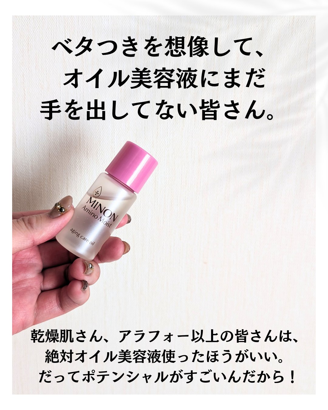\手持ちスキンケアを変えずにプラス☝️/【ミノンアミノモイストエイジングケアオイル】☑️¥1.650☑️美容液オイルゆらぎ肌や乾燥が気になる季節の変わり目などの出番!スキンケアにもうちょっとしっとりさがほしいという時のために、リピしているアイ...