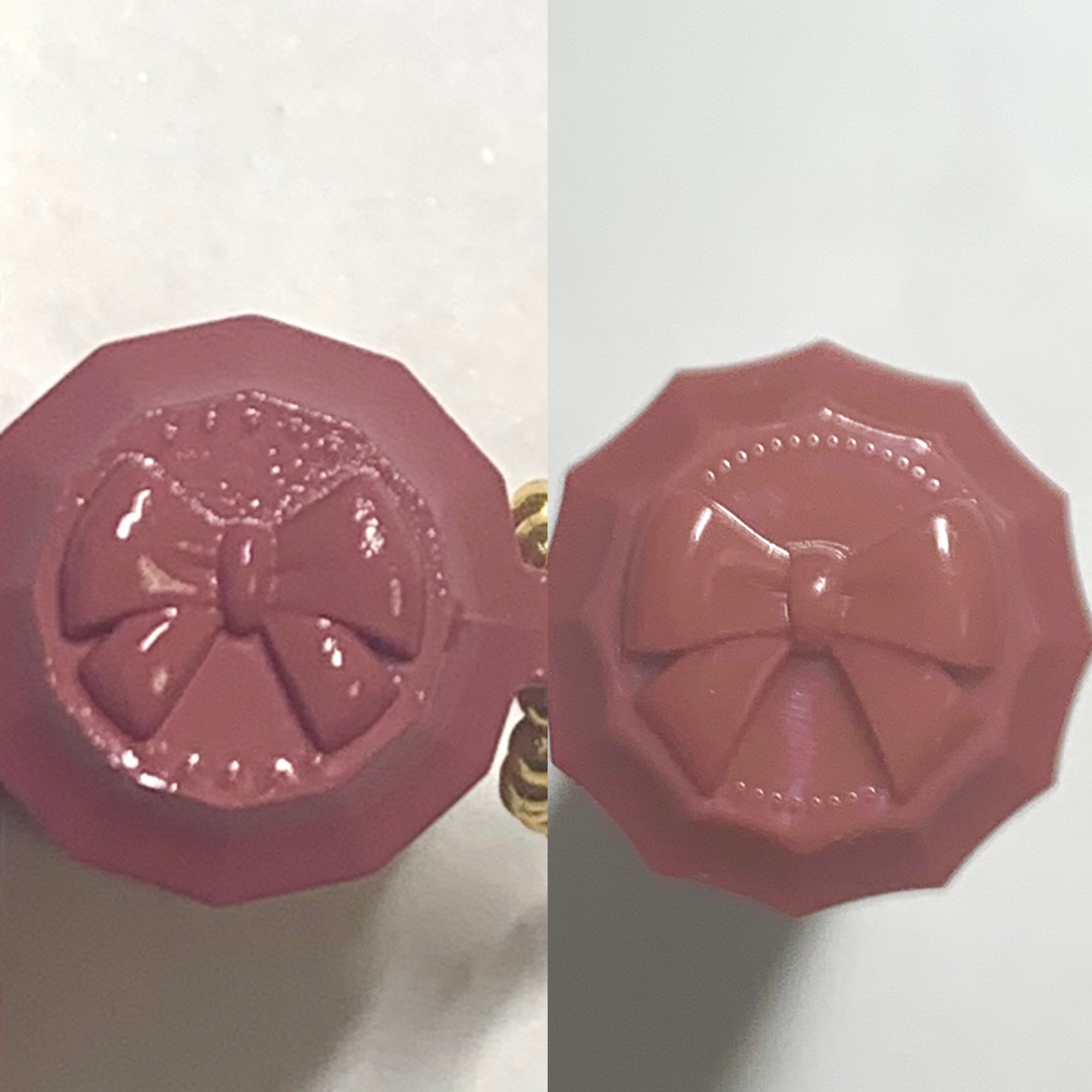 発色は少し濃いめでロムアンドのリップと少し似ていると感じました。 ティッシュオフしてもしっかり色残りしてくれます。 リップ本体も、ころんとしたフォルムでとても可愛いです💕