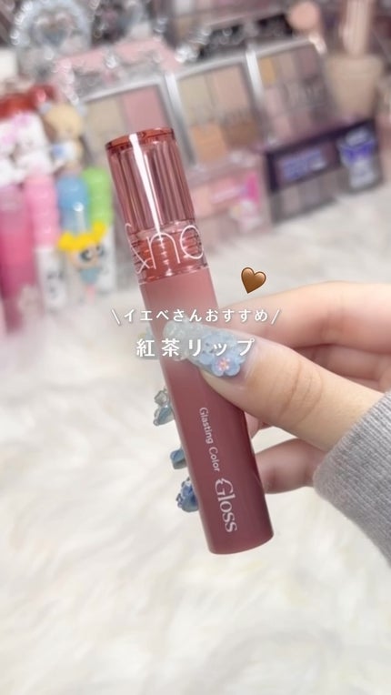 ベージュとブラウンのちょうど中間のその名の通りミルキーなブラウン🤎 濃いめのブラウン求めてる人には ちょっと物足りないかも🐱 #アンドバイロムアンド #限定リップ #ブラウンリップ #グラッシーボムティント #ローソンコスメ #韓国コスメ #ロムアand #イエべ秋 #初買いコスメレビュー #甘いチョコレートメイク #PC別推しリップ