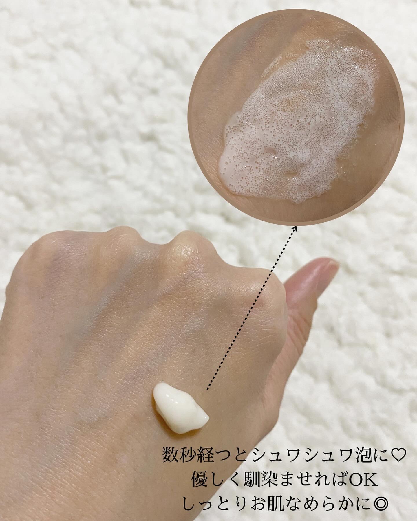 | なめらかなクリームのようなテクスチャーですが、 塗り広げて少しすると泡が立つ不思議な使用感! | 詳細を見る |