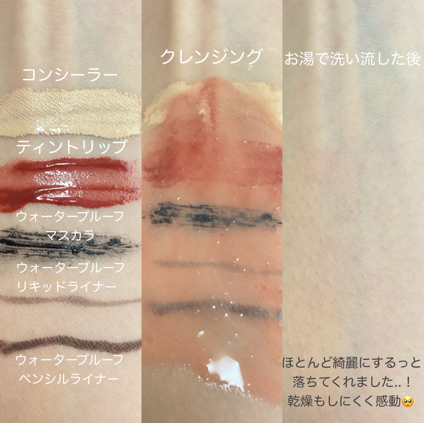 つけるだけでメイク瞬浮き🫧 ウォータープルーフマスカラ、毛穴メイクもしっかりオフしてくれるオイルクレンジング。 洗い上がりはつっぱりにくく、乾燥を感じにくい洗い上がり🤍 ビオレのこのThe クレンズオイルメイク落としはオイルタイプのクレンジングですが、ベタベタする感じは全くなくどちらかというとサラサラのテクスチャー🫧 写真四枚目で実際にウォータープルーフのアイテムを落としてみましたが、今まで使ってきたクレンジングの中ではダントツに落としやすかったです..!!(私個人の感想、ポイントメイクリムーバーを除いた場合です)