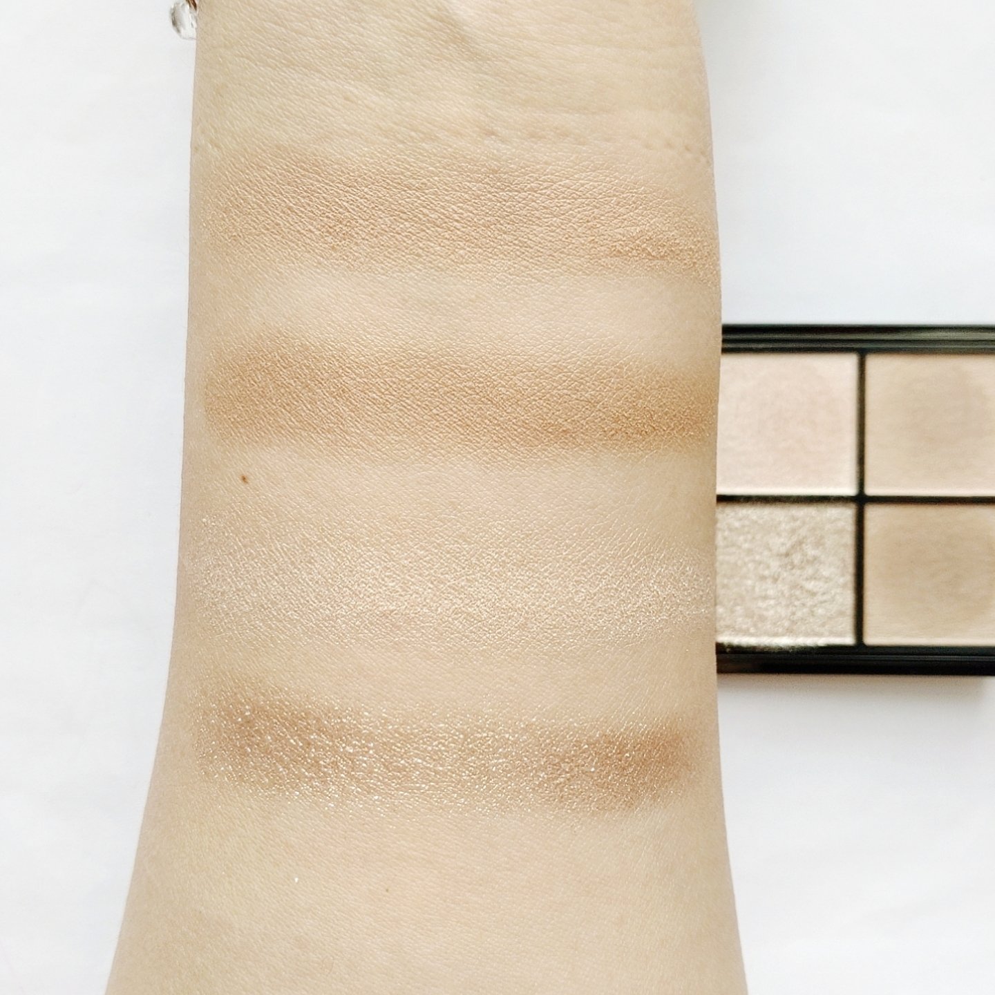 プチプラのクオリティじゃないっ!! 発売前からチェックしていたけれど、ここまで可愛いとは…😆 絶妙カラーで目もとのくすみを飛ばして*明るい印象に🩷 横割りグラデーションでメイクし、立体感をより出したかったので最後に1番左のカラーを上まぶたの真ん中と涙袋にのせています🙆 肌馴染みも良くて粉飛びも感じにくかったです💕 ブラウンの方も店頭に出てたら買おうかな💓