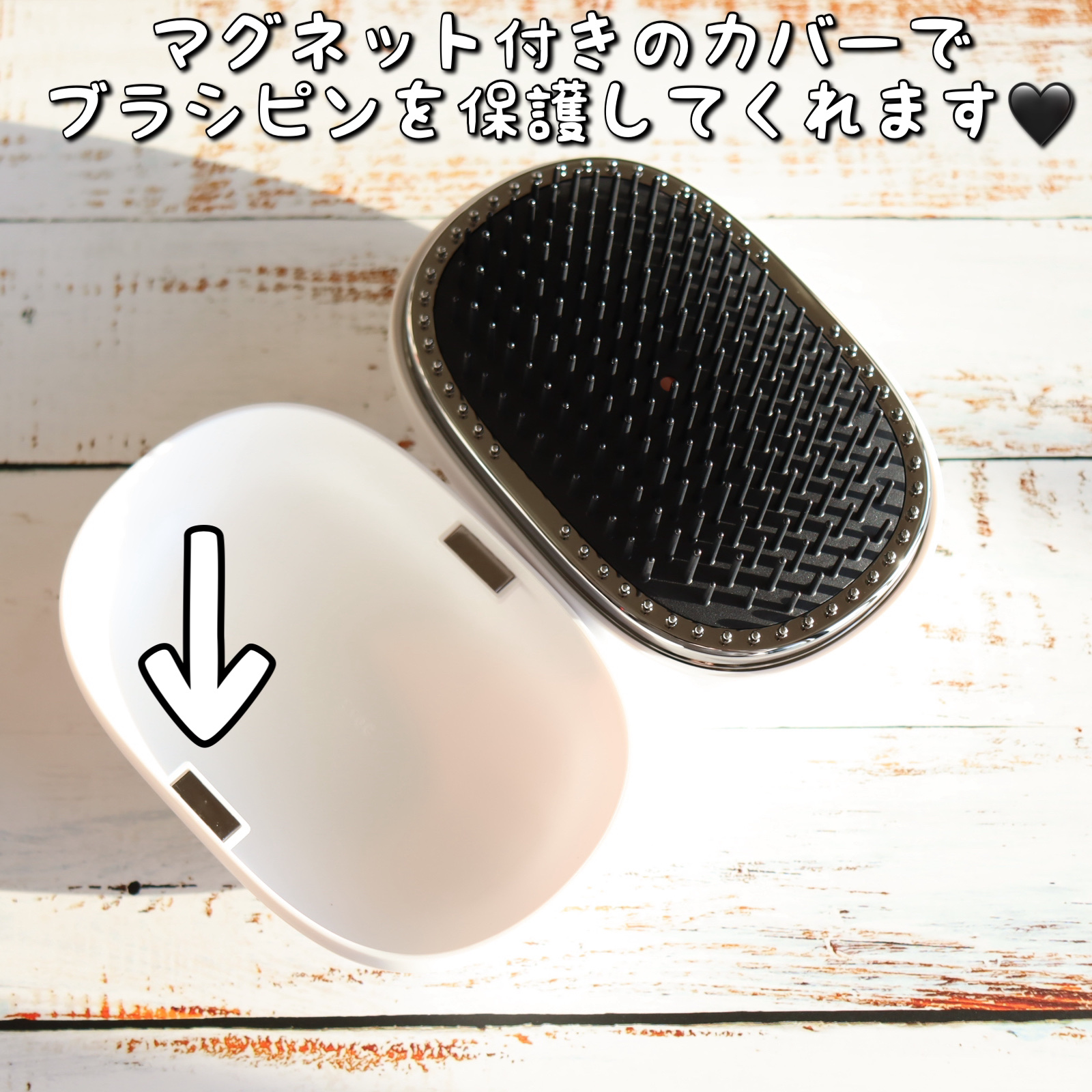 - 髪と地肌にやさしい使い心地、持ち運びにも便利なベースアップブラシ。 いつでも、どこでも、スタイリング。 POINT1:ころんっとスタイリッシュなデザイン ころんっとしたフォルムで、かわいいデザイン。 丸みのある、持ちやすい設計にしました。 POINT2:さらっとした仕上がりに メッキピン構造で、静電気を低減させ、とかすだけでさらさら髪に仕上がります。 POINT3:髪と地肌にやさしいとかし心地 3段階の高さのブラシピンで髪の絡まりを引っ張ることなく優しく解きほぐします。 クッション部は、クッション効果で地肌も気持よくとかせます。 POINT4:持ち運びに便利なカバー マグネットカバーでカチッと収納、ポーチもついて持ち運びもスマートに。 その他の特長 ・持ち運びや収納に便利なポーチ付き ・抗菌剤入り いつでも、どこでもさらっとまとまる髪に仕上がります。