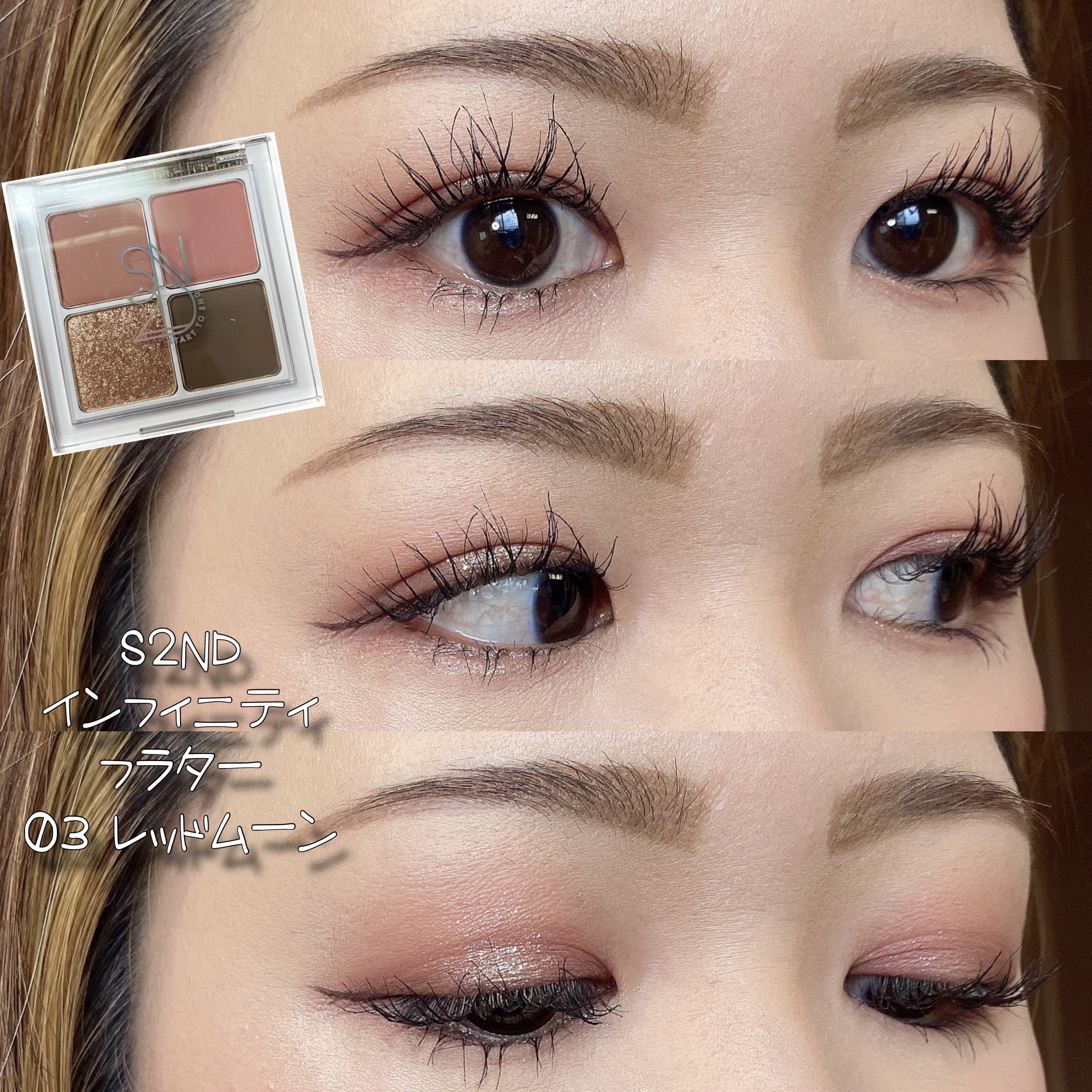 - 無限に煌めくワンタッチテクスチャー。 パーソナルカラーやなりたい印象に合わせて色を選べるアイシャドウパレット「S2ND エスツーエンディー インフィニティフラター」。 スフレのような軽い付け心地。 ひと塗りで均一に広がる柔らかテクスチャーで鮮やかに発色。 粉・ラメ飛びしにくい! 密着感が良く粉飛びを防いでヨレにくいから塗りたての発色が長続き! 捨て色のない4色パレットでメイク初心者でも簡単にアイメイクを楽しめるマルチカラー。