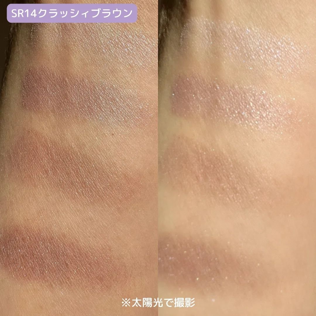 - <SR01 ベージュブラウン> トリエチルヘキサノイン、リンゴ酸ジイソステアリル、ラウリン酸亜鉛、イソステアリン酸水添ヒマシ油、ステアリン酸ソルビタン、スクワラン、ジメチコン、トコフェロール、メチルパラベン、(+/-)タルク、マイカ、金、酸化チタン、酸化鉄、水酸化Al、赤226 <SR02 リアルブラウン> トリエチルヘキサノイン、リンゴ酸ジイソステアリル、ラウリン酸亜鉛、イソステアリン酸水添ヒマシ油、ステアリン酸ソルビタン、スクワラン、ジメチコン、トコフェロール、メチルパラベン、(+/-)タルク、マイカ、金、酸化チタン、酸化鉄、水酸化Al、赤226 <SR03 ロイヤルブラウン> トリエチルヘキサノイン、リンゴ酸ジイソステアリル、ラウリン酸亜鉛、イソステアリン酸水添ヒマシ油、ステアリン酸ソルビタン、スクワラン、ジメチコン、トコフェロール、メチルパラベン、(+/-)タルク、マイカ、金、酸化チタン、酸化鉄、水酸化Al、赤226 <SR04 スモーキーブラウン> トリエチルヘキサノイン、リンゴ酸ジイソステアリル、ラウリン酸亜鉛、イソステアリン酸水添ヒマシ油、ステアリン酸ソルビタン、スクワラン、ジメチコン、トコフェロール、メチルパラベン、(+/-)タルク、マイカ、金、酸化チタン、酸化鉄、水酸化Al、赤226 <SR05 ウォームブラウン> トリエチルヘキサノイン、リンゴ酸ジイソステアリル、ラウリン酸亜鉛、イソステアリン酸水添ヒマシ油、ステアリン酸ソルビタン、スクワラン、ジメチコン、トコフェロール、メチルパラベン、(+/-)タルク、マイカ、金、酸化チタン、酸化鉄、水酸化Al、赤226 <SR06 センシュアルブラウン> トリエチルヘキサノイン、リンゴ酸ジイソステアリル、ラウリン酸亜鉛、イソステアリン酸水添ヒマシ油、ステアリン酸ソルビタン、スクワラン、ジメチコン、トコフェロール、メチルパラベン、(+/-)タルク、マイカ、金、酸化チタン、酸化鉄、水酸化Al、赤226 <SR07 マグノリアブラウン(限定)> トリエチルヘキサノイン、リンゴ酸ジイソステアリル、ラウリン酸亜鉛、イソステアリン酸水添ヒマシ油、ステアリン酸ソルビタン、スクワラン、ジメチコン、トコフェロール、メチルパラベン、(+/-)グンジョウ、コンジョウ、タルク、マイカ、金、酸化チタン、酸化鉄 <SR08 アクアティックブラウン> トリエチルヘキサノイン、リンゴ酸ジイソステアリル、ラウリン酸亜鉛、イソステアリン酸水添ヒマシ油、ステアリン酸ソルビタン、スクワラン、ジメチコン、トコフェロール、メチルパラベン、(+/-)グンジョウ、コンジョウ、タルク、マイカ、金、酸化チタン、酸化鉄 <SR09 ベビーブラウン> トリエチルヘキサノイン、リンゴ酸ジイソステアリル、ラウリン酸亜鉛、イソステアリン酸水添ヒマシ油、ステアリン酸ソルビタン、スクワラン、ジメチコン、トコフェロール、メチルパラベン、タルク、ホウケイ酸(Ca/Al)、マイカ、金、酸化チタン、酸化鉄、赤226 <SR10 ピオニーブラウン> トリエチルヘキサノイン、リンゴ酸ジイソステアリル、ラウリン酸亜鉛、イソステアリン酸水添ヒマシ油、ステアリン酸ソルビタン、スクワラン、ジメチコン、トコフェロール、メチルパラベン、グンジョウ、タルク、マイカ、金、酸化チタン、酸化鉄 <SR11 ブリックブラウン> トリエチルヘキサノイン、リンゴ酸ジイソステアリル、ラウリン酸亜鉛、イソステアリン酸水添ヒマシ油、ステアリン酸ソルビタン、スクワラン、ジメチコン、トコフェロール、メチルパラベン、タルク、マイカ、金、酸化チタン、酸化鉄、赤202、赤226 <SR12 デニッシュブラウン(限定)> トリエチルヘキサノイン、リンゴ酸ジイソステアリル、ラウリン酸亜鉛、イソステアリン酸水添ヒマシ油、ステアリン酸ソルビタン、スクワラン、ジメチコン、シリカ、トコフェロール、ホウケイ酸(Ca/Al)、酸化スズ、メチルパラベン、グンジョウ、タルク、マイカ、金、酸化チタン、酸化鉄、赤226 <SR01'23 ベージュブラウン(限定デザイン)> トリエチルヘキサノイン、リンゴ酸ジイソステアリル、ラウリン酸亜鉛、イソステアリン酸水添ヒマシ油、ステアリン酸ソルビタン、スクワラン、ジメチコン、トコフェロール、メチルパラベン、(+/-)タルク、マイカ、金、酸化チタン、酸化鉄、水酸化Al、赤226 <SR03'23 ロイヤルブラウン(限定デザイン)> トリエチルヘキサノイン、リンゴ酸ジイソステアリル、ラウリン酸亜鉛、イソステアリン酸水添ヒマシ油、ステアリン酸ソルビタン、スクワラン、ジメチコン、トコフェロール、メチルパラベン、(+/-)タルク、マイカ、金、酸化チタン、酸化鉄、水酸化Al、赤226 <SR11'23 ブリックブラウン(限定デザイン)> トリエチルヘキサノイン、リンゴ酸ジイソステアリル、ラウリン酸亜鉛、イソステアリン酸水添ヒマシ油、ステアリン酸ソルビタン、スクワラン、ジメチコン、トコフェロール、メチルパラベン、(+/-)タルク、マイカ、金、酸化チタン、酸化鉄、水酸化Al、赤226 <SR13 ヘーゼルブラウン(限定)> トリエチルヘキサノイン、リンゴ酸ジイソス