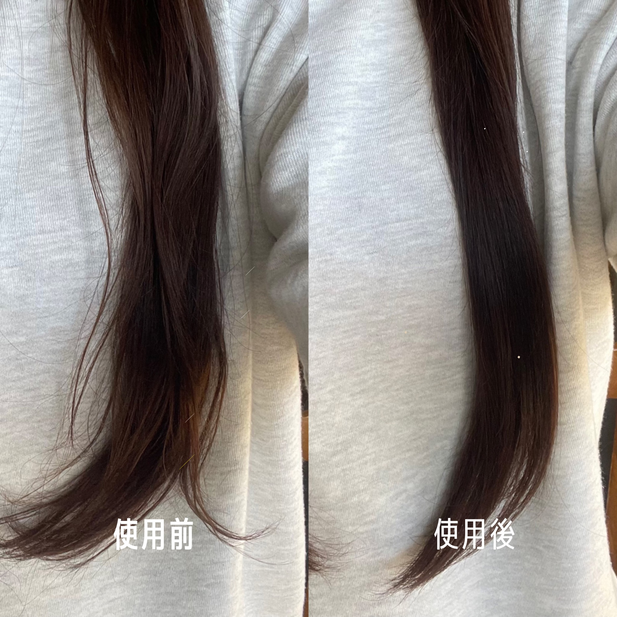 ・泡立ちがよくてモッコモコ ・シャンプーを流しただけでもきしまず、優しい指通り ・キツすぎない優しい香り ・ドライヤーをして翌朝、とにかく髪に艶が生まれた...! ・上部は艶も生まれてしっとりするものの毛先のパサつきは残る(パーマをして傷んでるのもあります) ・ボトルの中身は見えないので残量は蓋を開けて確認! 特に私が嬉しいのが、ふとした時に「あれ、髪の毛の艶がすごくない??」と自分でも思うこと!!!本当に!!!! 光に当たると艶リングが見えてテンションが上がります☺️☺️ サイドの髪を2つに分けてツイストしてその束を合わせて持つと髪に浮かび上がるハートのリングも作れちゃうそうです...!