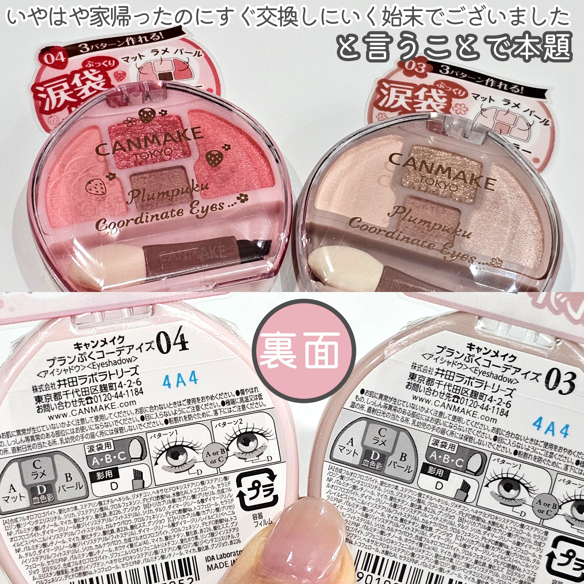 コメント失礼します🐰 キャンメイクの公式インスタグラムで2色重ねてイチゴミルクティにするのも提案されていたので、歯医者さんに行かれたときの涙袋はまさに大人も使いやすいミルキーピンクな使い方で可愛いですね☺️個人的には上下まぶたにイチゴ塗って思いっきりピンクメイクするのが気に入りました🍓