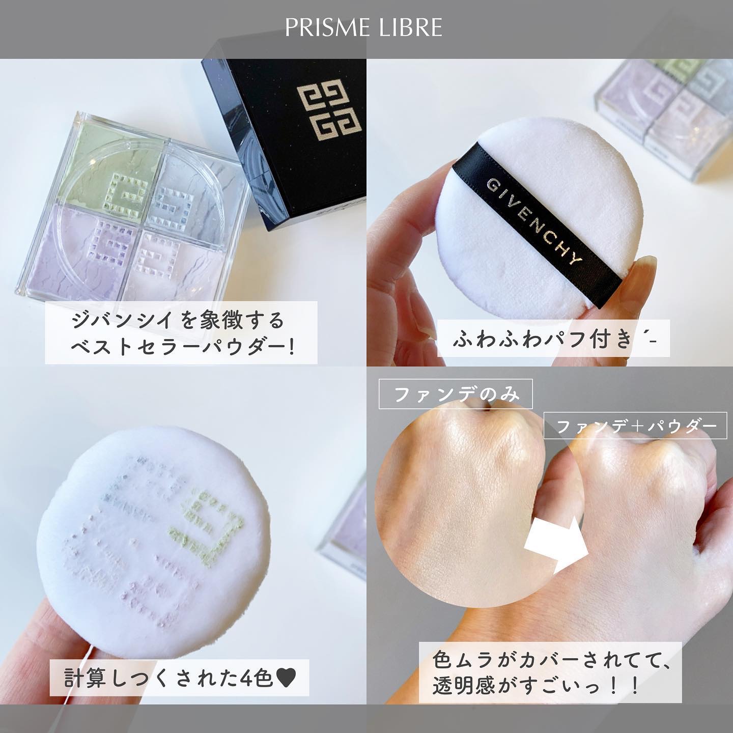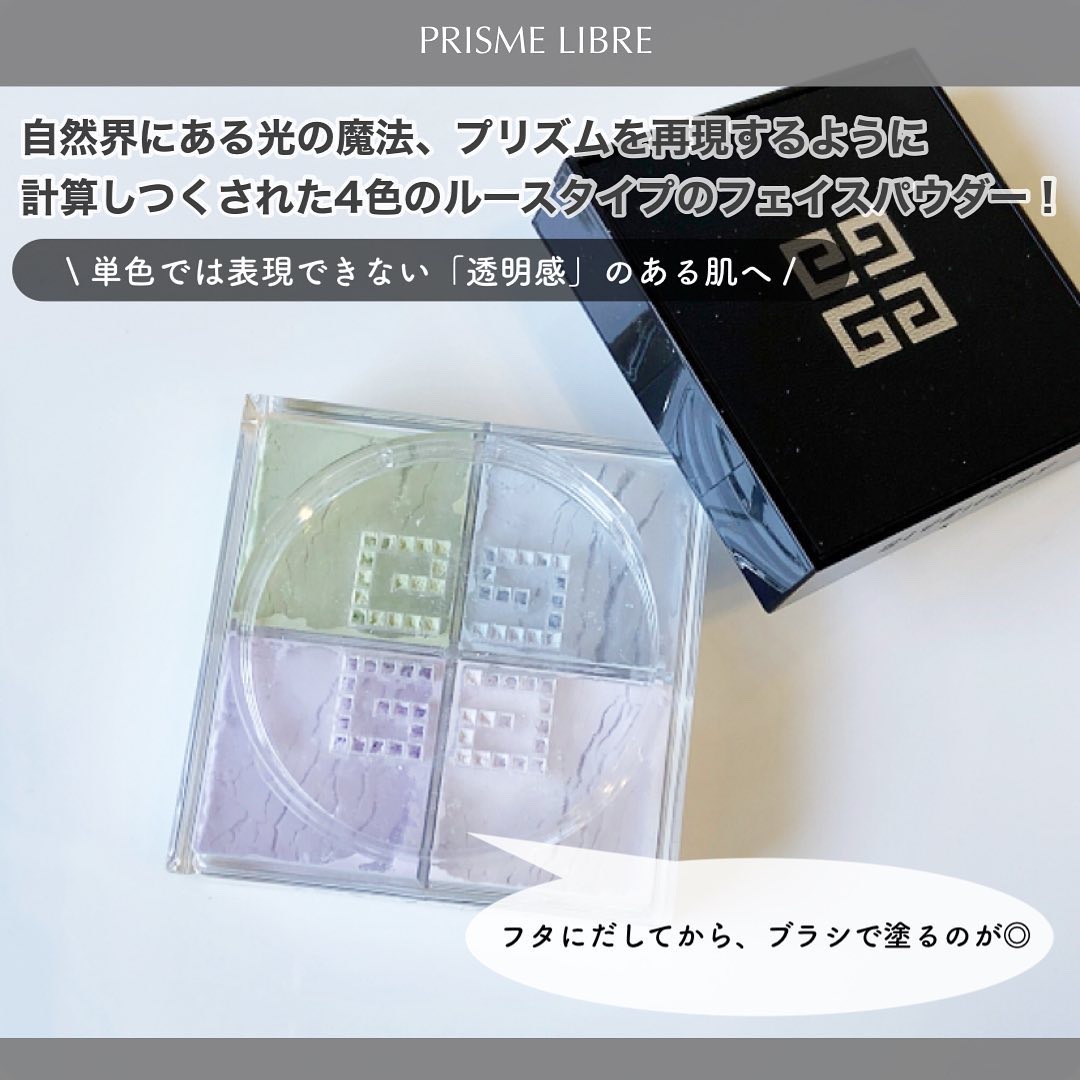 #ジバンシイサマールック ✔️プリズム・リーブル・スキンケアリング・コレクター💜🩵→透明感、💚→赤み消し、🍑→クマや目周りのくすみ、🩷→パウダー後ツヤ&チーク✔️プリズム・リーブル001手持ちの001を使ったよ◎その側から内側にタップして馴染...