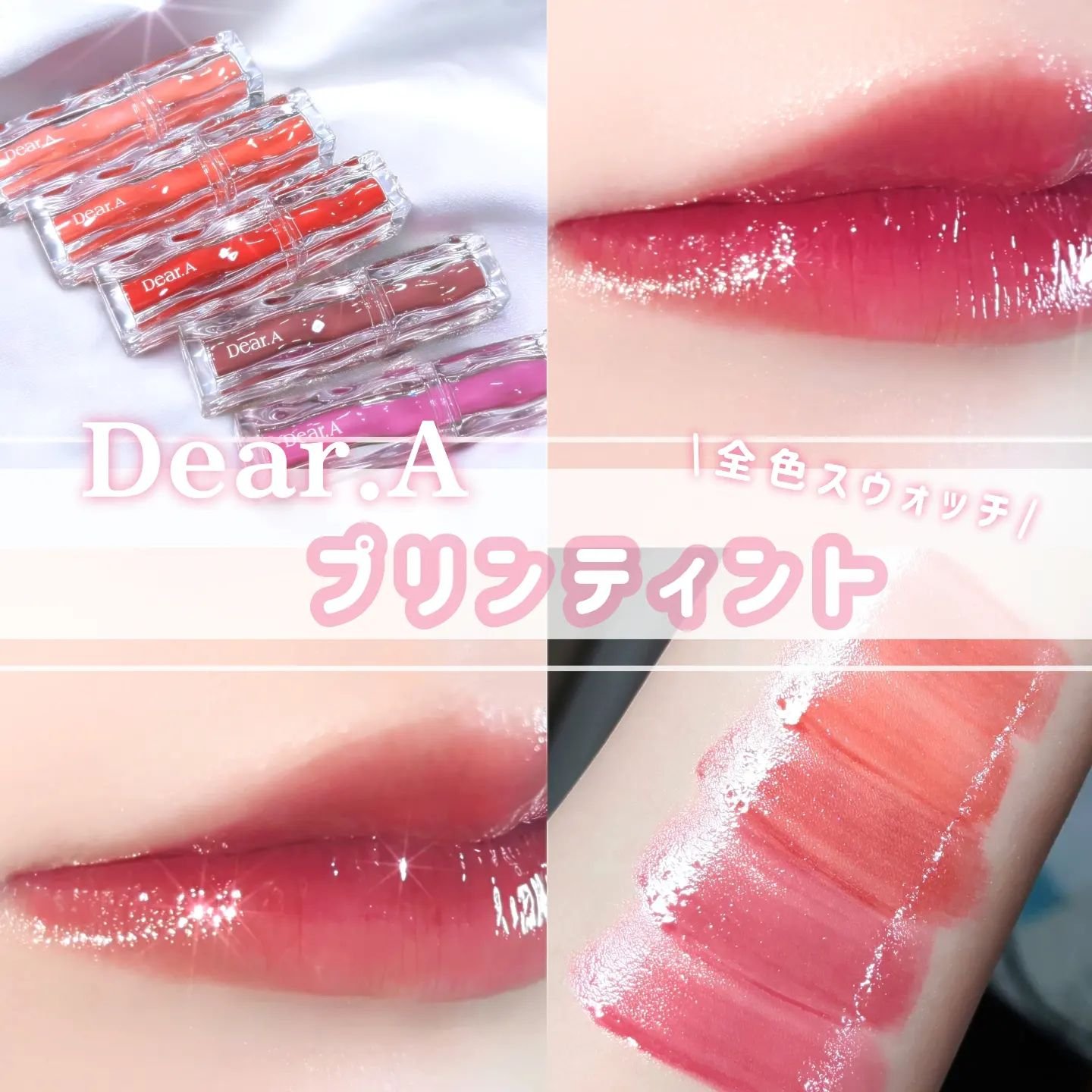 艶やか×水光ティント Dear.Aのティント初めて使ってみたけど塗りやすくてとっても可愛かった!!🎀 一度塗りで発色が良くて唇が潤う感じで好みの仕上がりで満足だったよ🫶 ぜひメガ割でゲットしてほしい!!!