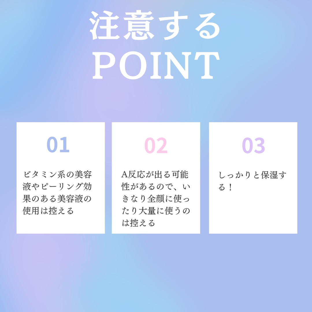 - こだわり成分配合◎パッケージにもこだわりをプラス♪ ●パッケージのポイント! エアレス容器でレチノール成分*を守り、鮮度の高い成分をそのまま肌へ届けます。 心地よく馴染み肌のキメを整える - 水分たっぷりの使用感でべたつきにくい! - しっとり肌の角質層隅々まで馴染み肌のキメが整った美肌に導いてくれます。 *整肌成分 使用方法 ◎ STEP1. エンドウ豆ほどに手に取り、気になる部分や顔全体に塗り広げます。