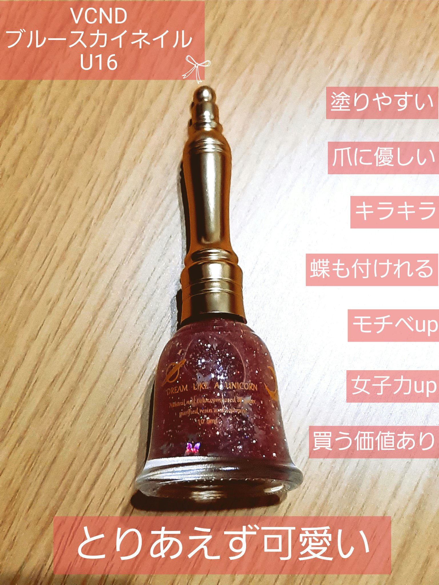 透け感のあるくすみピンクのベースに蝶のホログラムが入っててこれ一本で可愛く仕上がる!! 水を主成分として作られてるからツンとしたにおいが少なく爪への負担も少ないらしい。 ハケも塗りやすいしムラになりにくいからネイル初心者さんでも使いやすそう🥺💓
