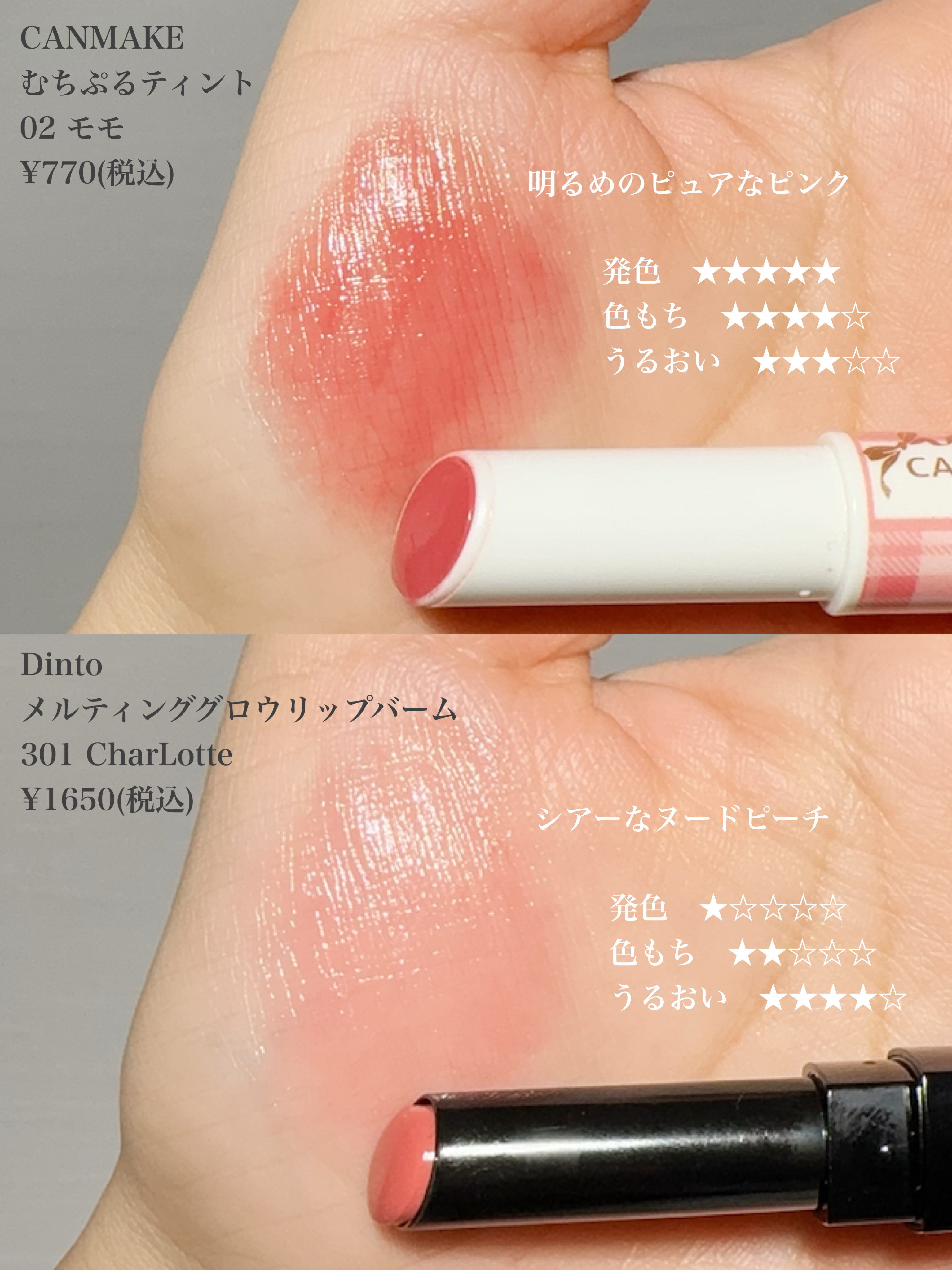 似ているリップの色味を比較しました。どれも春らしいデイリー使いしやすい色〜〜🌸この中だったらrom&ndデュイフルウォーターティント13CUSTARDMAUVEがやっぱいっちばん♡♡♡くすみすぎないほどよいピンクリップに仕上がるから💖もう1つ...