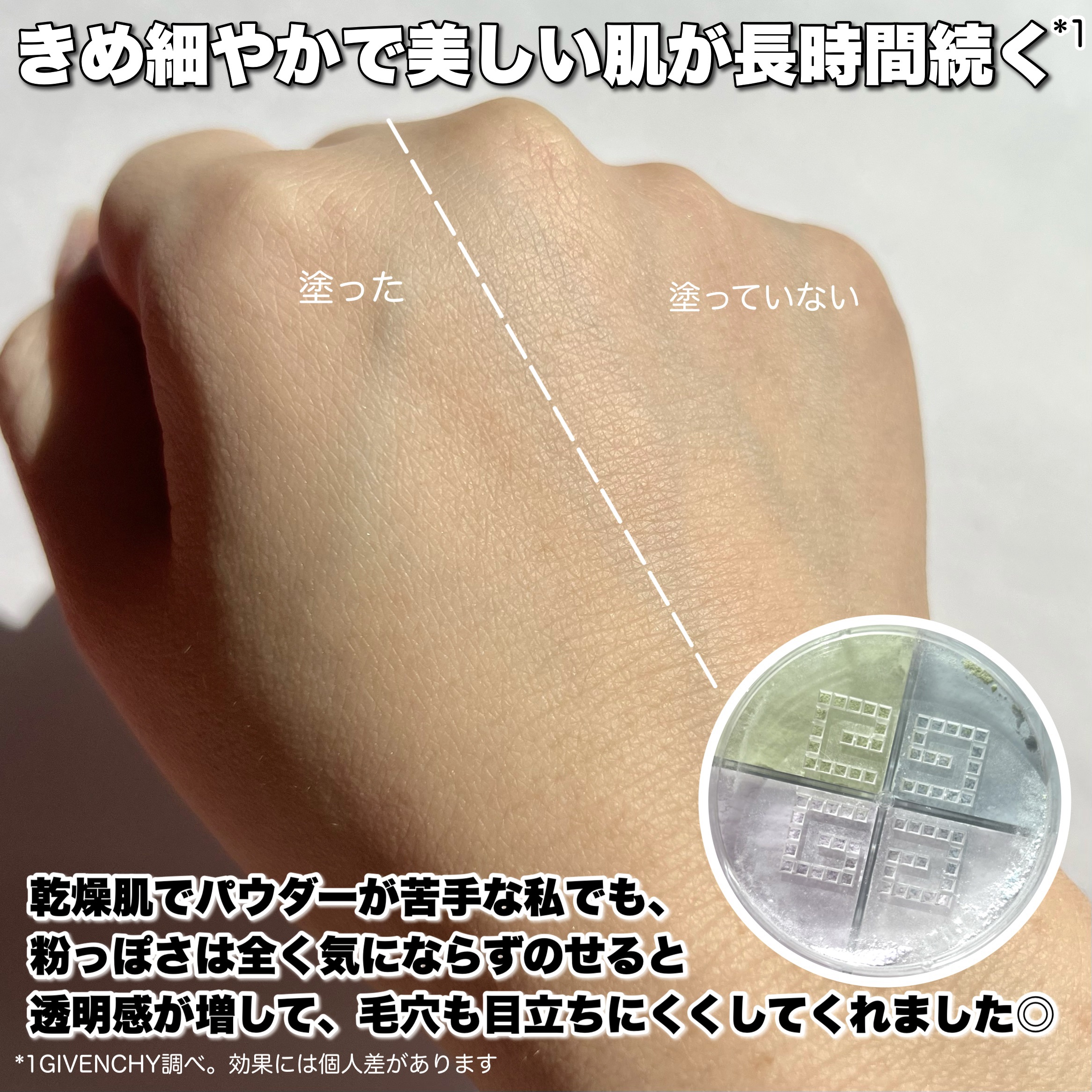 #ジバンシイサマールック ✔️プリズム・リーブル・スキンケアリング・コレクター💜🩵→透明感、💚→赤み消し、🍑→クマや目周りのくすみ、🩷→パウダー後ツヤ&チーク✔️プリズム・リーブル001手持ちの001を使ったよ◎その側から内側にタップして馴染...