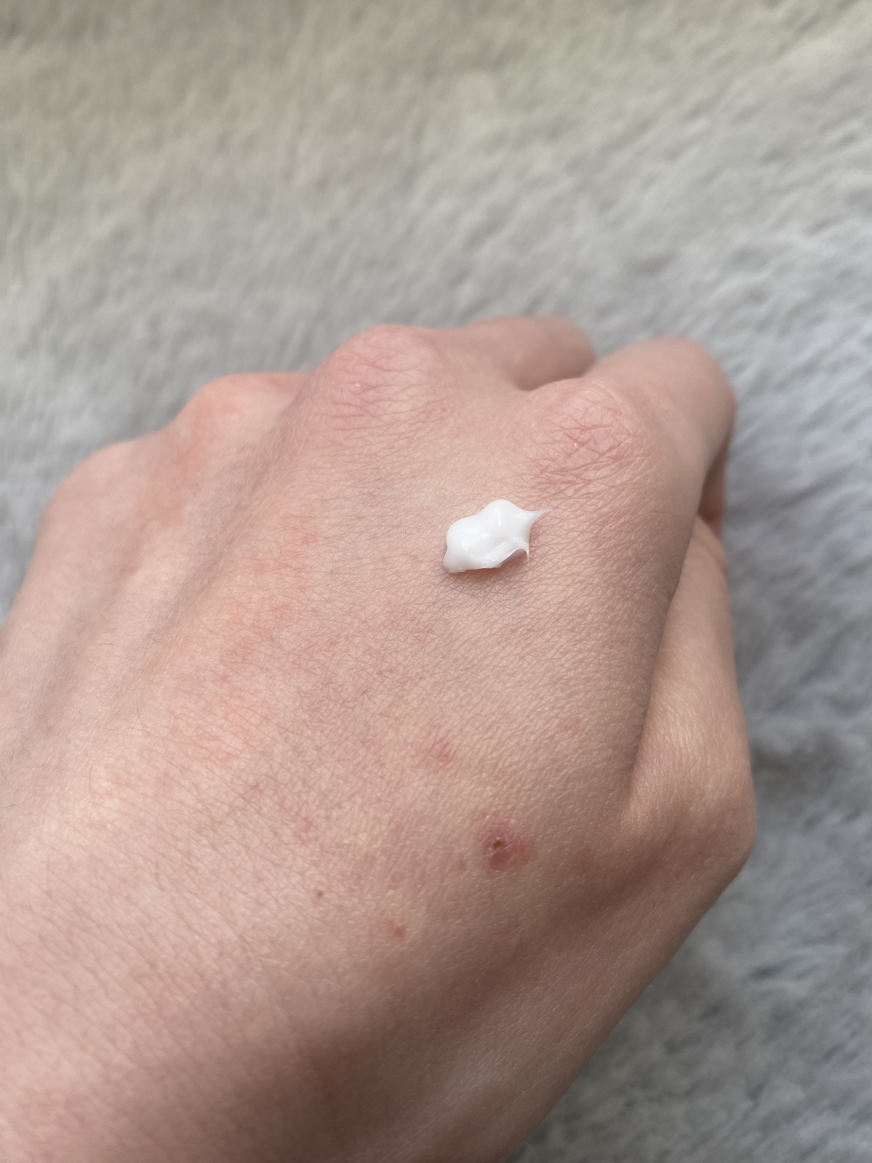 液体そのものがラベンダーの色味をしています。 色味補正機能によりワントーン明るく、白肌に見せてくれます。 伸びが良く塗り広がりが良いです。 確かにトーンアップしますが、私は元々肌が白いのであまり大きな差を感じられない気がしました。 液体そのものは一般的なUVのように白色。 パールが入っており、自然な光沢感を出してくれます。 光を反射したかのような仕上がり。太陽の下に出るとキラキラ輝く肌✨ こちらも塗り広がりはとても良いです。 白肌さんにオススメ! 肌をワンランク上に魅せてくれる気がします💗