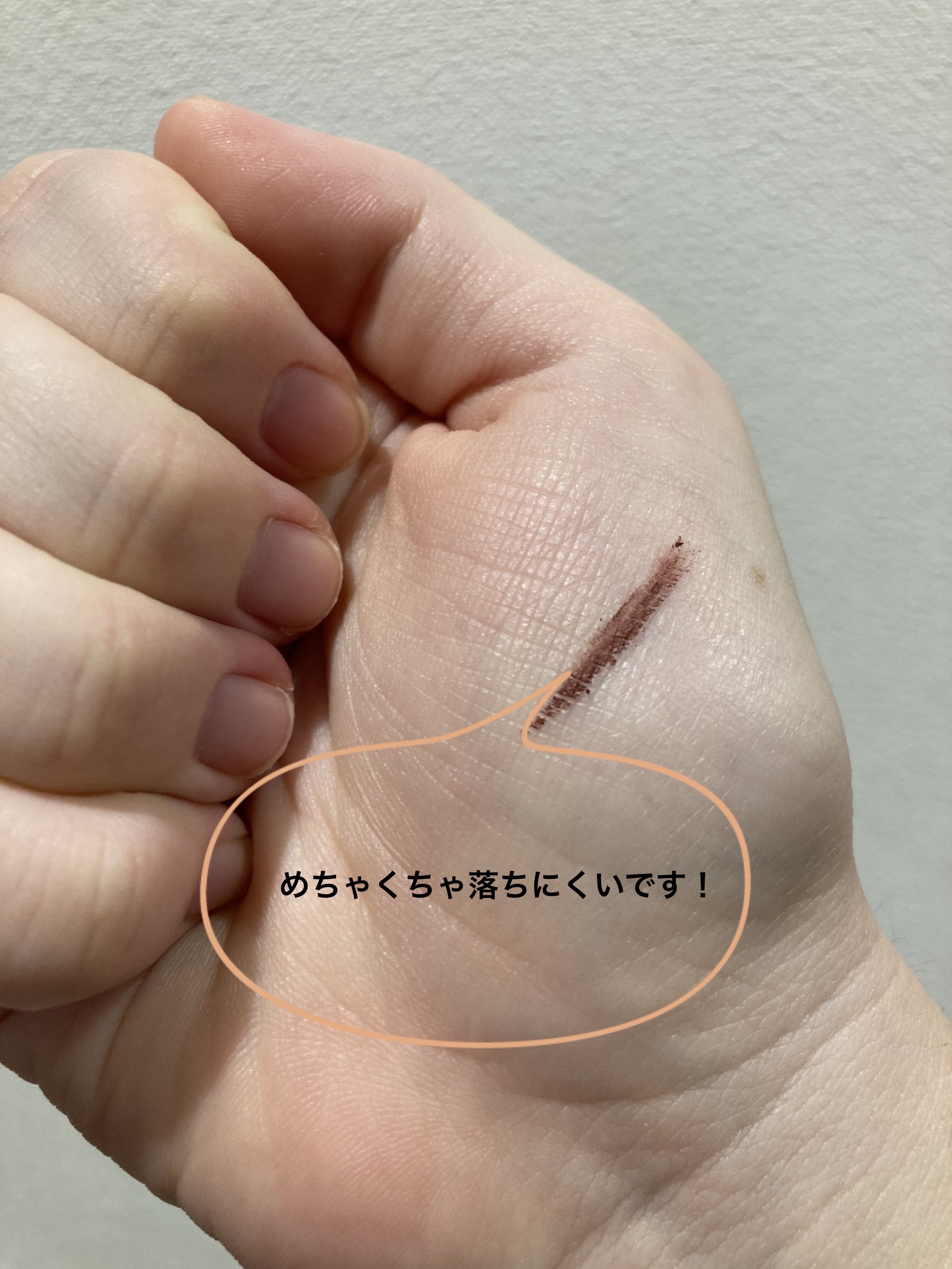 やわらかくてするする描ける ・肌馴染み◎ ・しっかり発色 ・びっくりするほど落ちにくい バズってた色ってガーネットバーガンディだったっけな?と思い、とりあえず買ってみました。 店頭でテスターを軽率に手の甲に描くと強めに擦っても落ちないので注意です⚠️