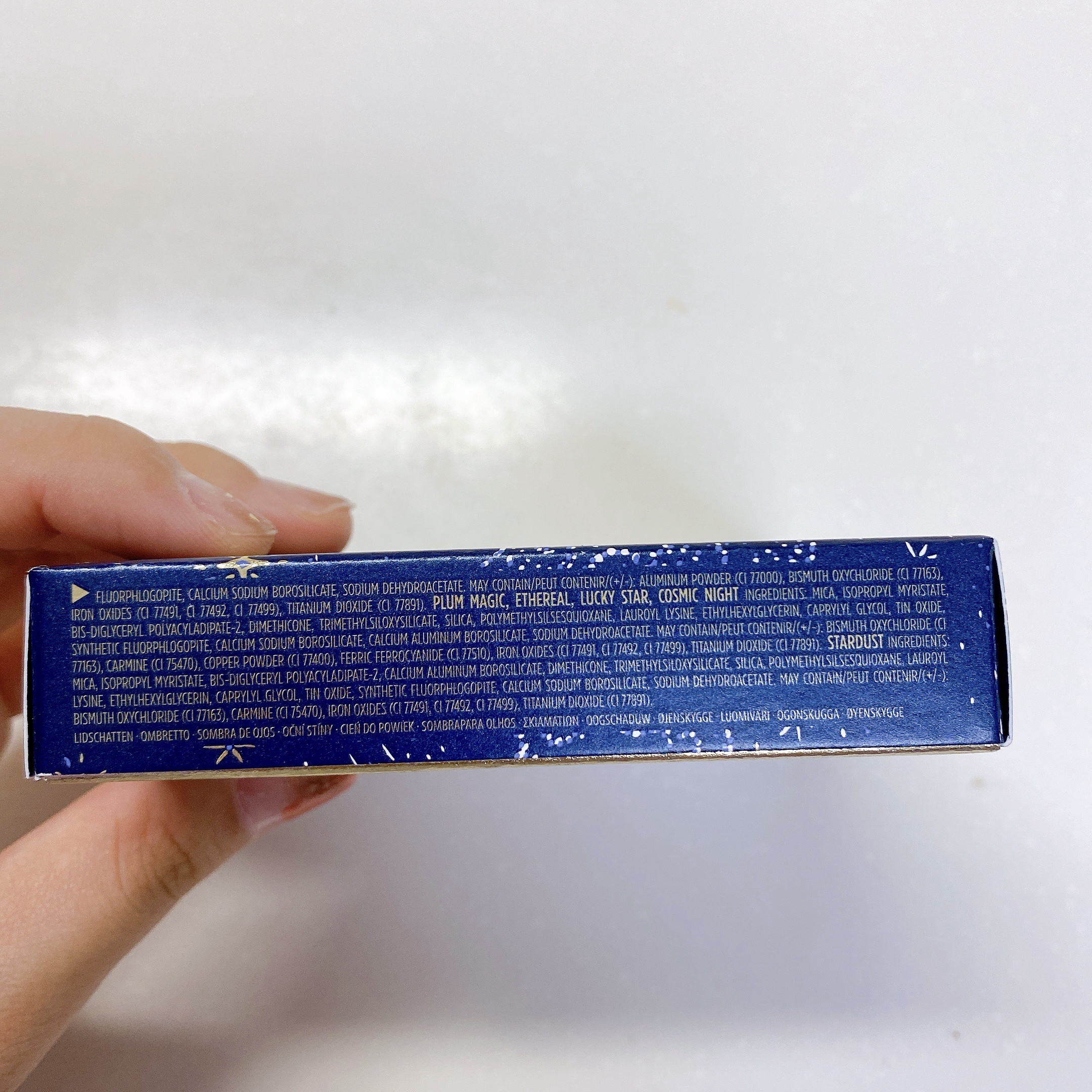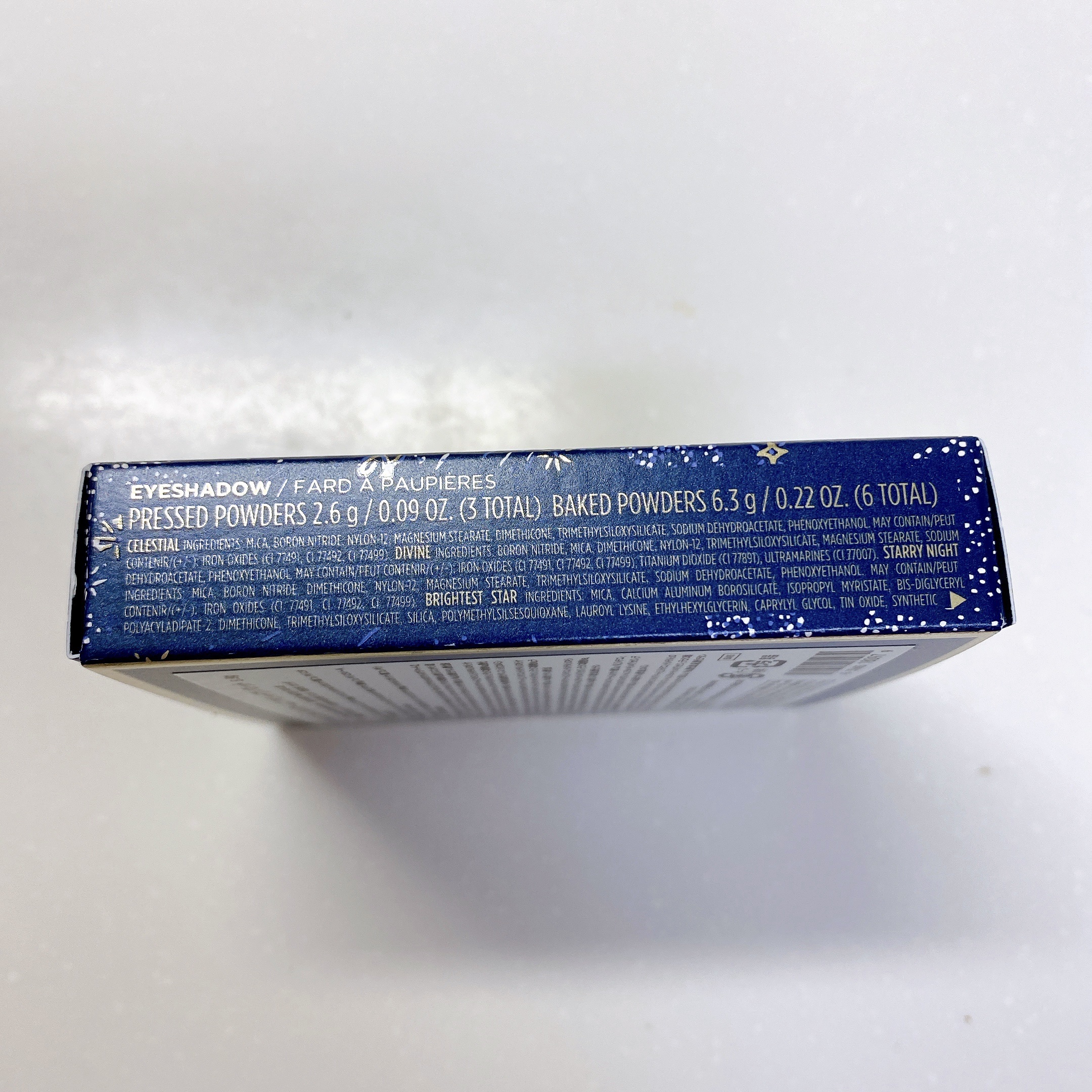 - 星空の煌めきを纏うアイカラーパレット 鮮烈な光を放ち眩いほどに輝く星のようなゴールドのパッケージが美しいアイシャドウパレット。マット~シマーの質感とトープ~ゴールドのニュートラルカラーにプラムのアクセントをプラスしたフェミニンかつシックなシェードバリエ―ションが、眩いほどに煌めく星空ような印象的な表情を叶えます。微細なピグメントがなめらかに目もとにしっとりなじみ、均一に発色。さらに、配合されたマルチディメンショナルパールが、肌を美しく立体的に輝かせ、ホリデーシーズンの高揚感を彩ります。タルクフリー・ウェット&ドライ使用可能。 【セット内容】限定1種(アイカラー 9色) ① CELESTIAL・・・クリーム(matte)② DIVINE・・・ダスティモーブ(matte)③ STARRY NIGHT・・・ディープパープルブラウン(matte)④ BRIGHTEST STAR ・・・ディープシャンパン(shimmer)⑤ PLUM MAGIC・・・リッチパープル(shimmer)⑥ ETHEREAL・・・ブライトシャンパンゴールド(shimmer)⑦ LUCKY STAR ・・・チェスナッツブラウン(shimmer)⑧ STAR DUST・・・ブライトベビーピンク(shimmer)⑨ COSMIC NIGHT・・・ディープブラウン(shimmer) *すべて限定色