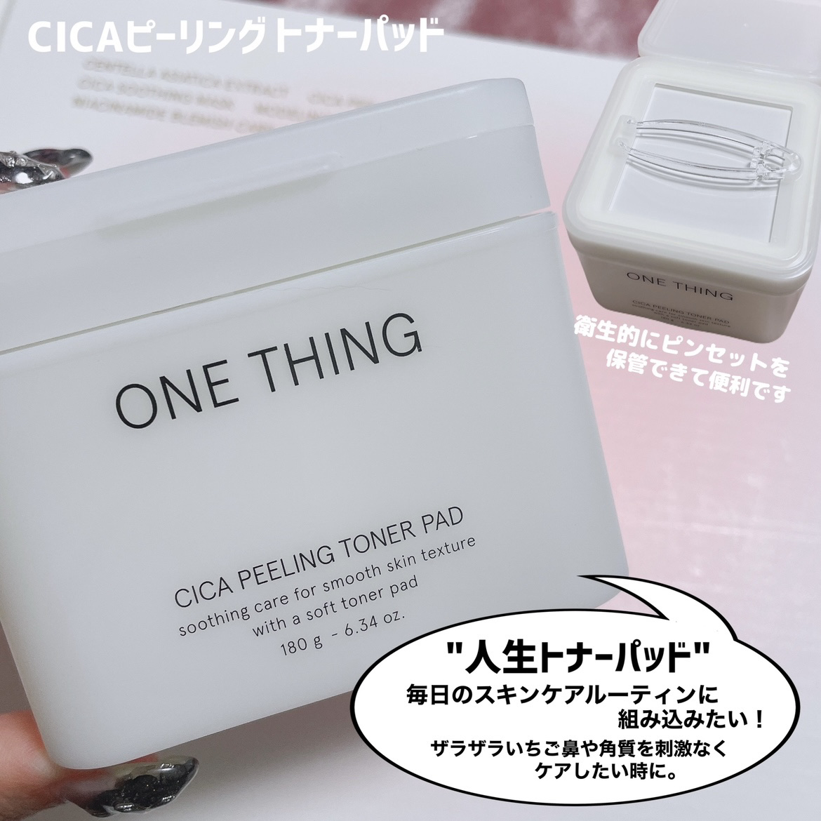 💚ONETHINGシカピーリングトナーパッド\敏感肌さんにもおすすめの角質ケア♡/万能で使いやすい四角いパッドタイプ✨中央に切れ込みが入っていて、用途に合わせて半分にして使えるのが便利🤍⸻ガーゼ面でやさしく拭き取り、コットン面ではパックとして...