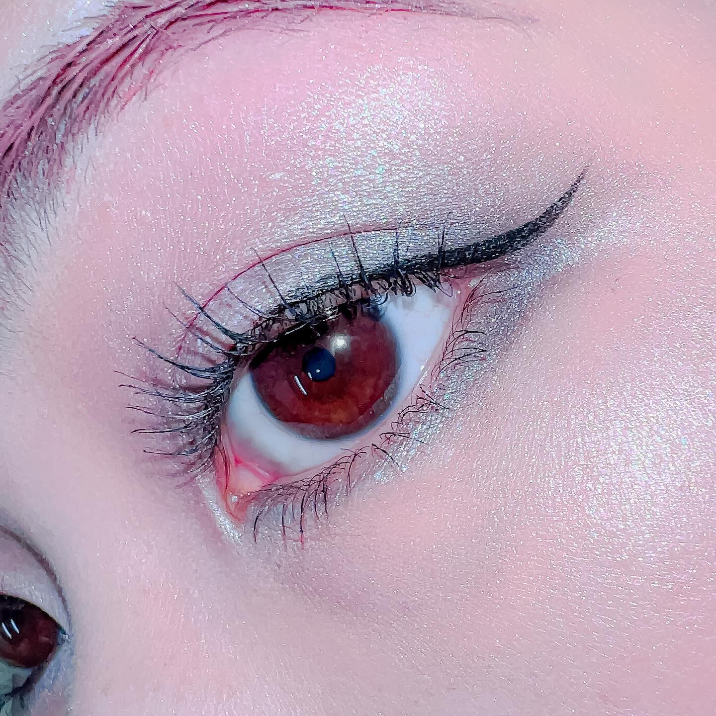 ピンクにグレージュも良いですね👌💗 今日は可愛らしい感じにしてみました💕 上下瞼黒目〜目頭側にラメを塗ってキラキラさせております🤩 目尻はマットのピンクを濃いめに重ねて💗 グレージュのアイライナーと相性◎