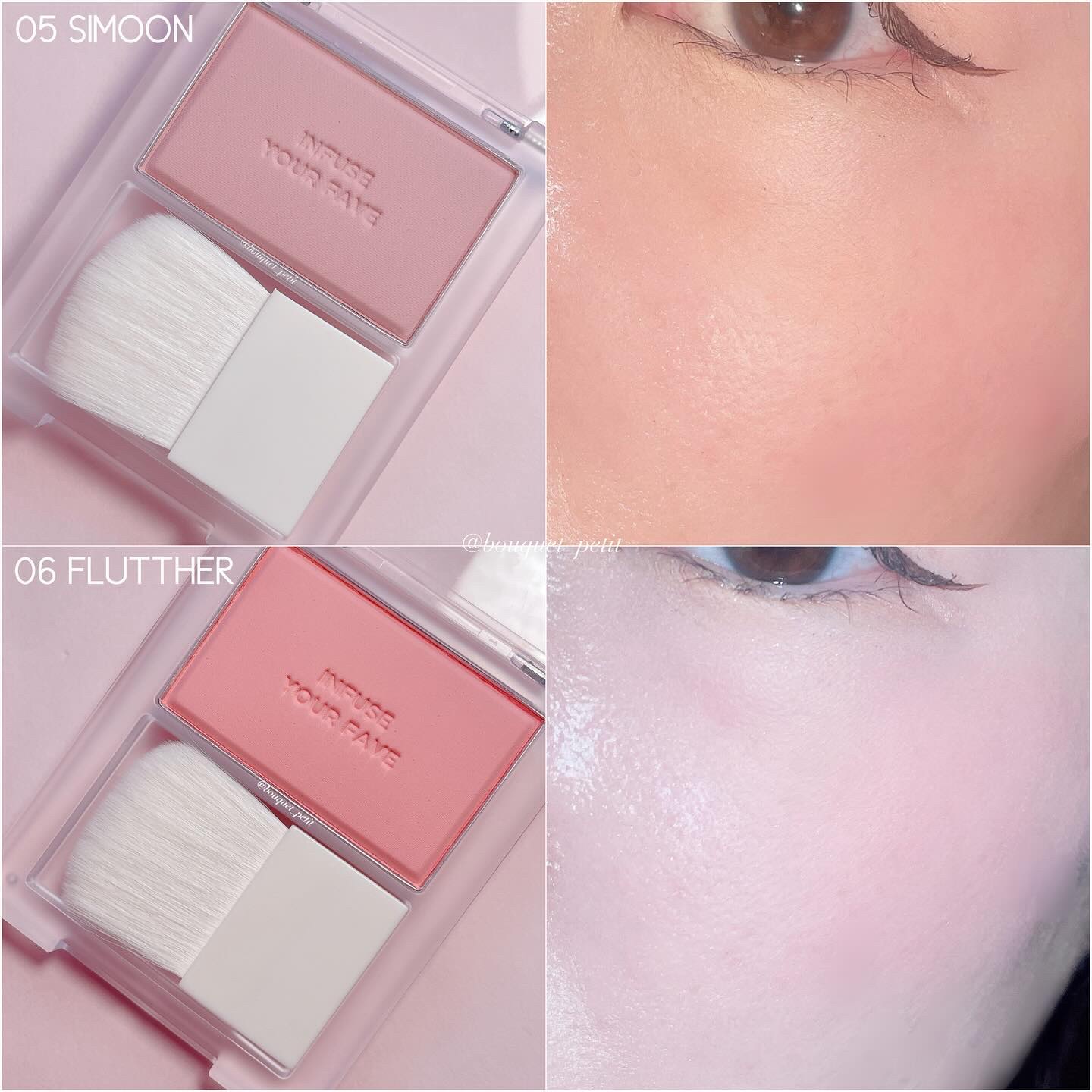 ..HOLIKAHOLIKAのチークが可愛すぎるから見て😭💗💗MYFAVEINFUSINGBLUSH🍒毛穴カバーチークとも呼ばれてるよ🫶粉飛びしにくくて、ふわふわ透明肌があっという間に作れちゃうの😍カラーは10色🌈・01INNOCENCE・0...