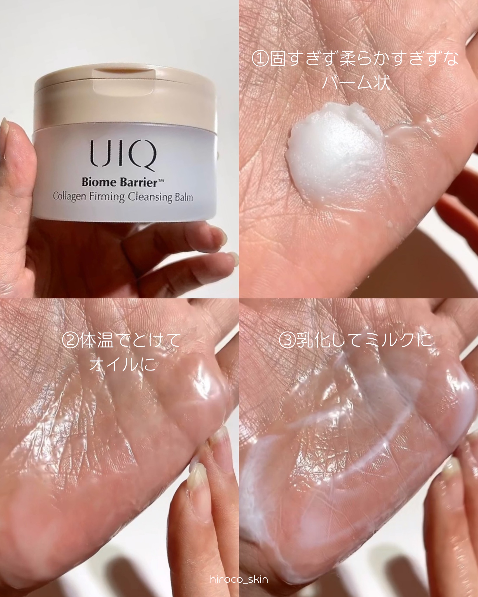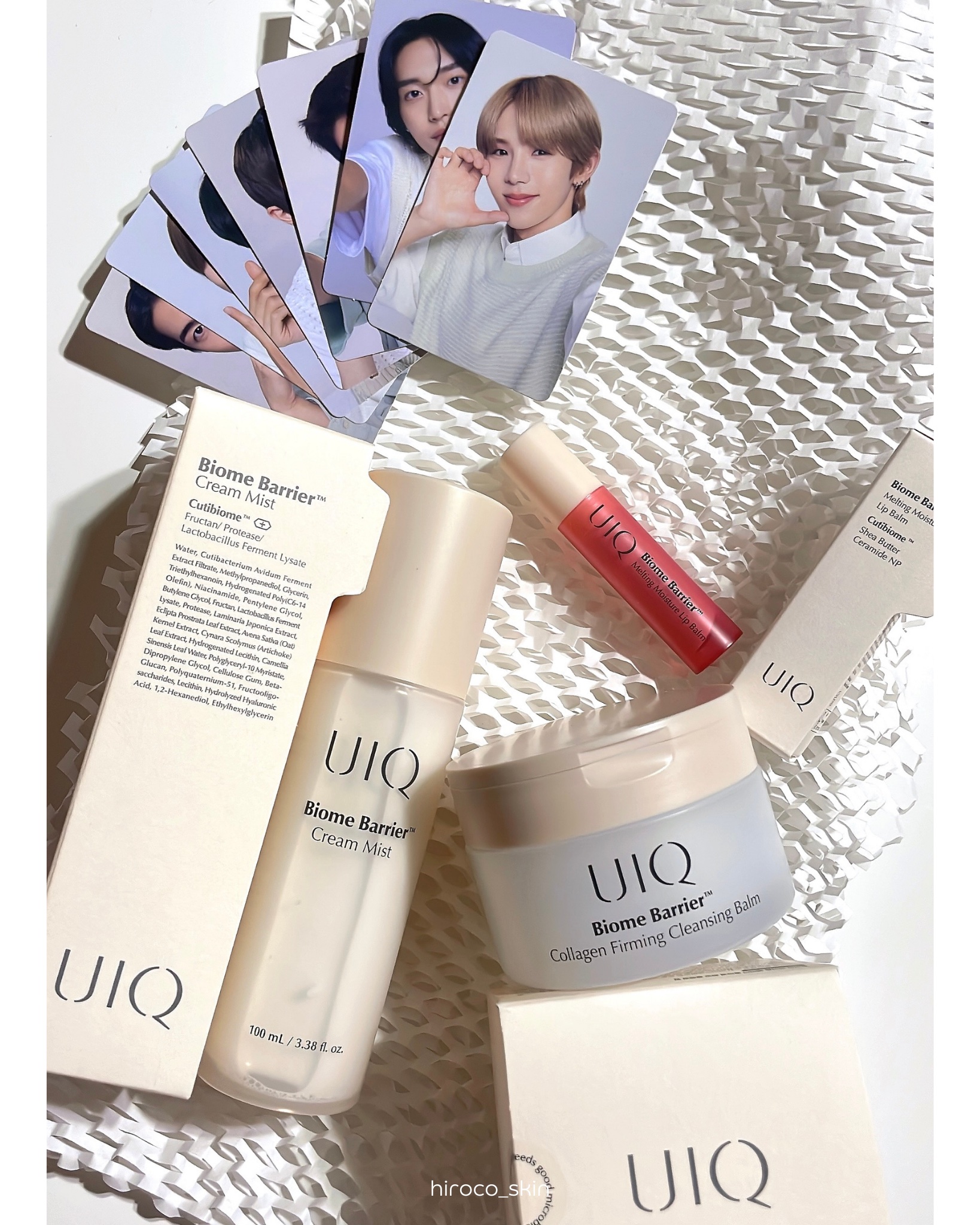 クリーム+ウォーター2層で振って使う高保湿感ミスト❤︎ 微細なミストだから、メイクの上からでもOK UIQの独自開発のキューティーバイオーム™成分配合で、肌バリアをサポートして、肌本来の美しさに導いてくれる♩ 柔らかく溶け、濃いアイライン・マスカラ・リップまでスッキリ落とせるディープクレンジング🤍