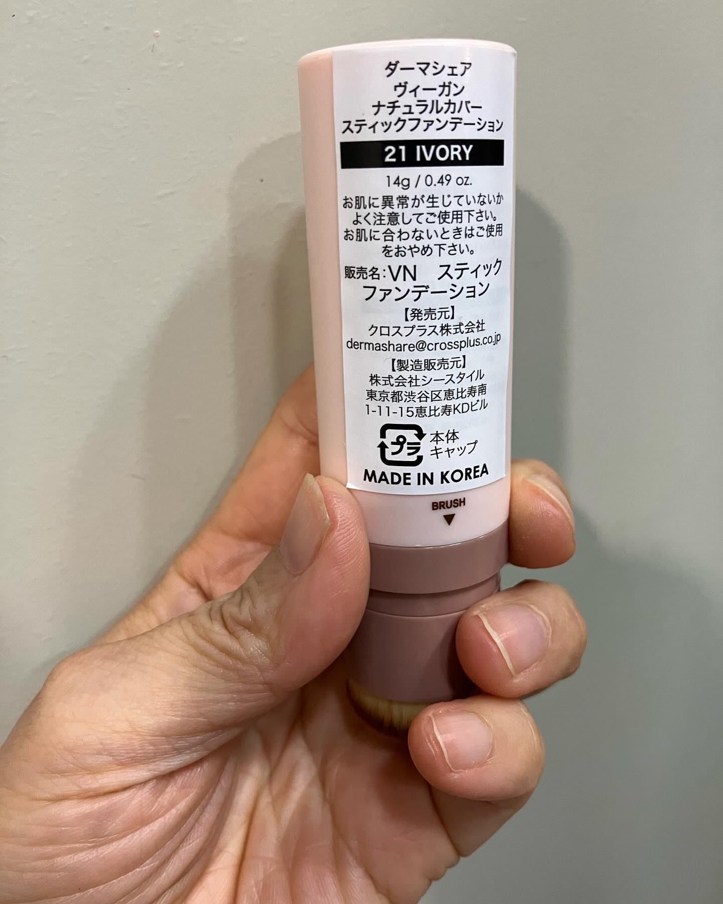 韓国発のスティックファンデ◇dermashare◇ヴィーガンナチュラルカバースティックファンデーションSPF50+PA+++#PR韓国ヴィーガン認証で低刺激でお肌に優しいスティックファンデブラシがセットになっていて手を汚さないでメイクできるの...