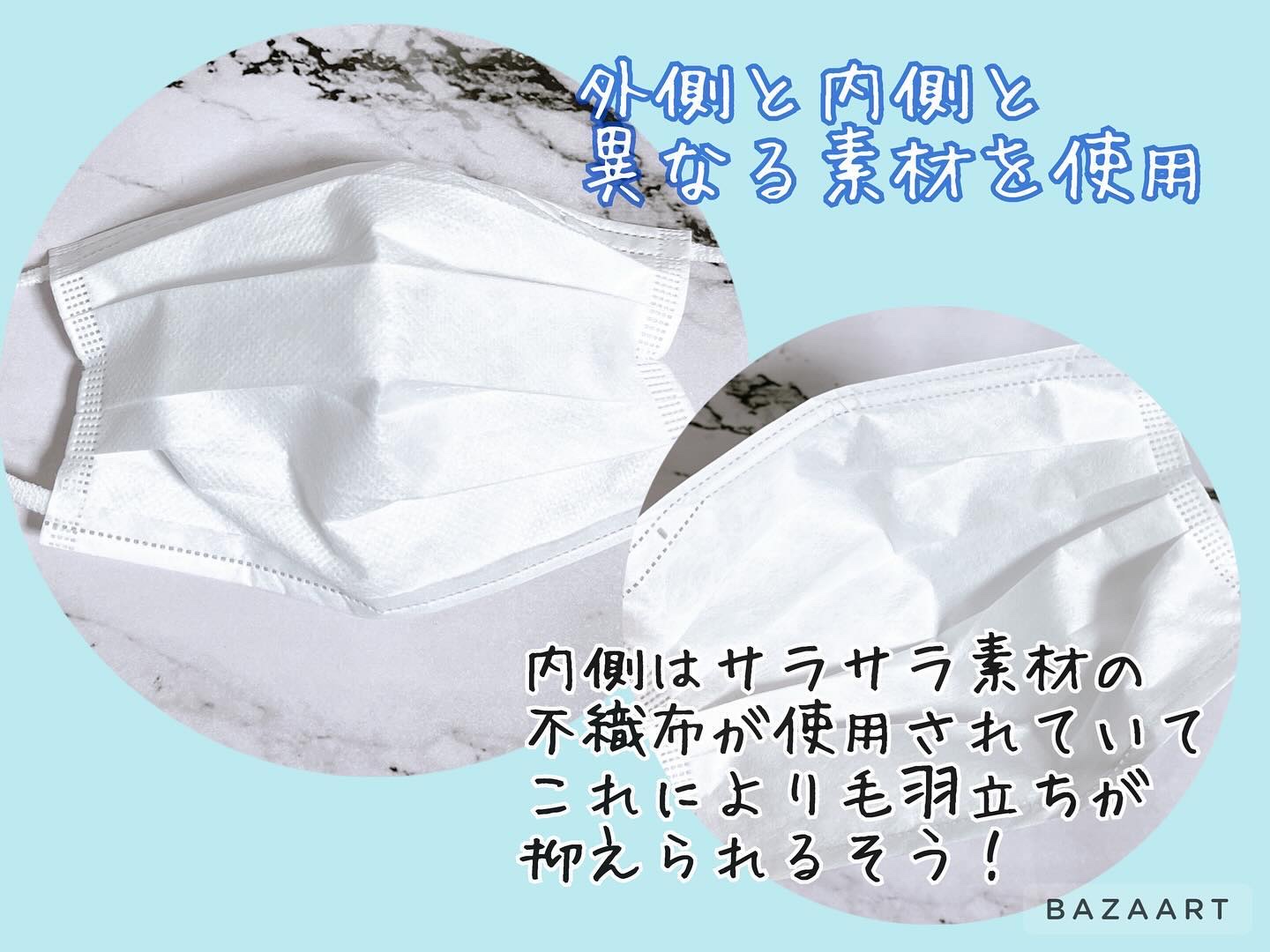 毛羽立ちにくいマスクって有難い!🙏✨ 口元側はツルツルサラサラした手触りで肌触りがよく感じました☺️ ピンクの箱の方が小さめで、マスク自体も淡いピンクで可愛い🩷ᩚ 青い箱の方がふつうサイズで、こちらは白いマスクです。