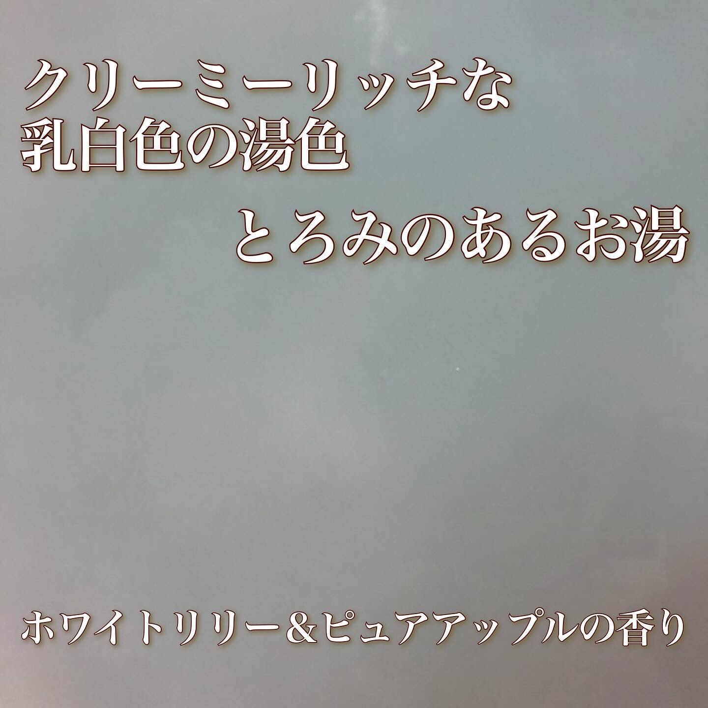 Füro独自の高保湿処方でお肌のしっとり感を高める炭酸タイプの「浴用化粧料」🫧 ブラウンシュガー、バオバブオイル厳選美容エキスなど、保湿成分を贅沢に配合。 ホワイトリリー&ピュアアップルの華やかで甘くフルーティーな香りに癒されます♪ 乳白色でとろみのあるお湯でお肌がしっとりします♡ 特別な日に使いたい🛁🫧