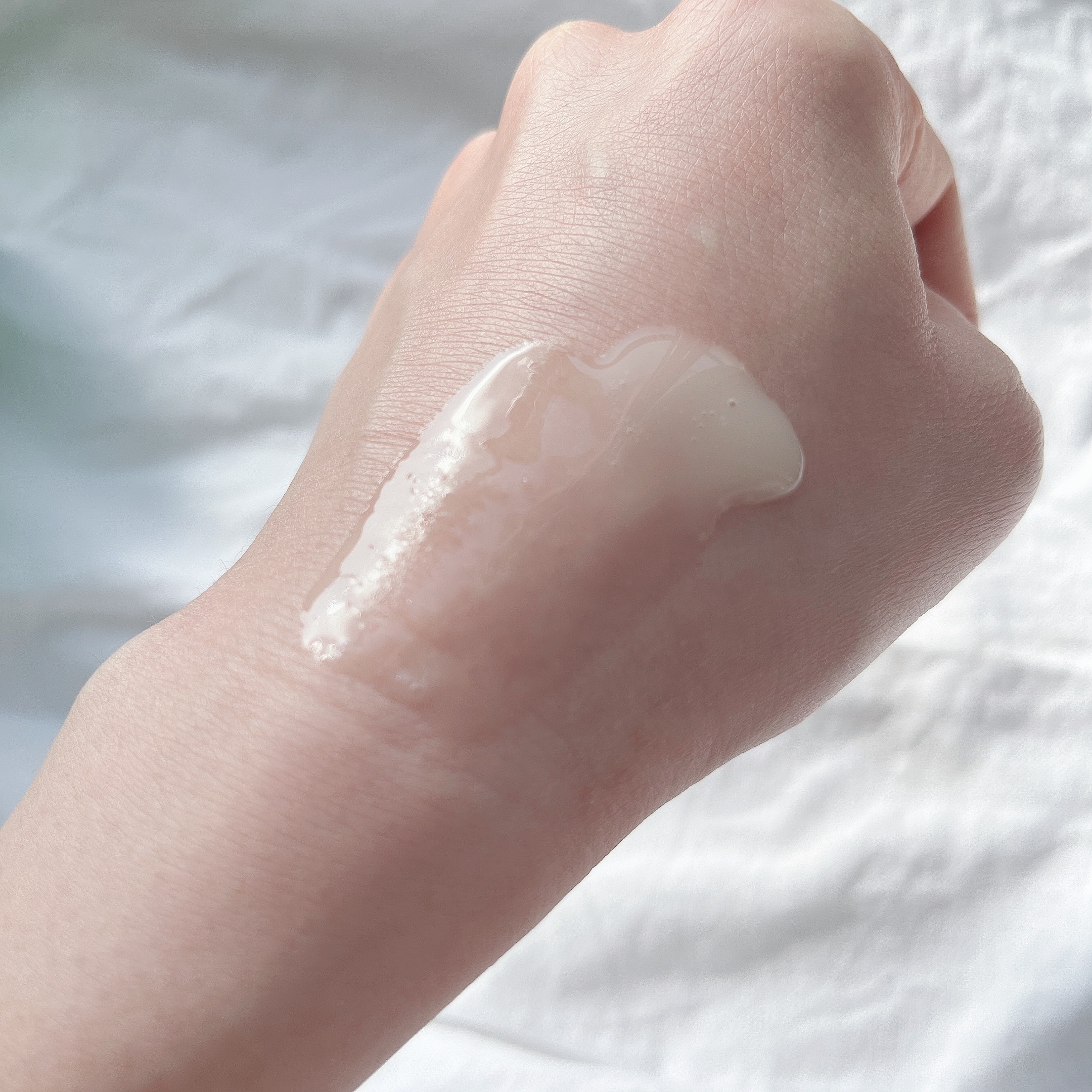 日焼け止めジェルと書かれているのですが、クリームのようなこっくりとしたテクスチャーでした! 日焼け止めなのにしっとりとした使い心地で、わたしはとても好みでした🥰✨ べたべたしないし、白浮きもしないので1年中使いやすそう! 香りは少ししますが、わたしは気にならなかったです💡 顔や身体にも使えますし、持ち運びにも便利なサイズ感なので、出かけ先でも使っています❤︎