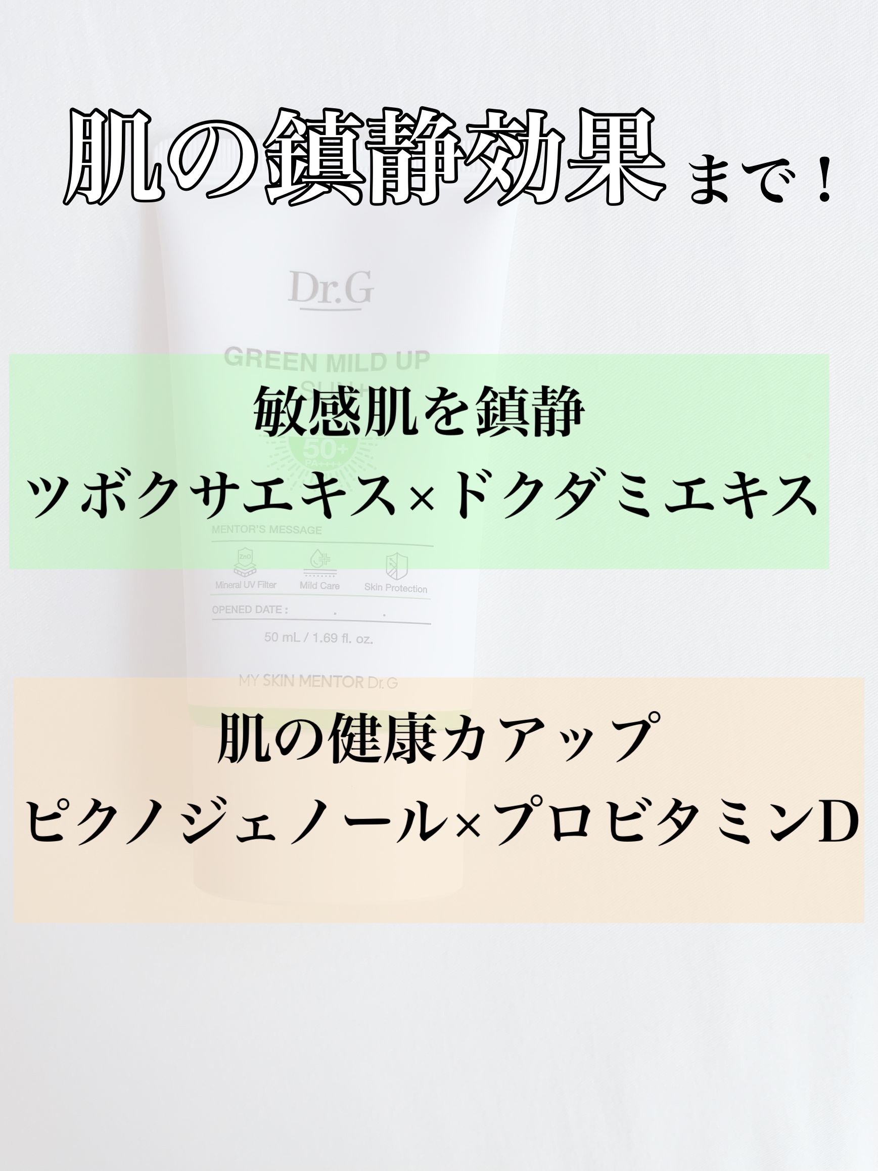オリーブヤングで5年間連続日焼け止め部門受賞❗️ 優しくマイルドなノンケミカル日焼け止めを使ってみました。 韓国では日焼け止めと言ったらDr.Gと言われるほど人気の日焼け止め。 SPF50+ PA++++で高いUVA・UVBカット効果があるだけでなく、ブルーライト・赤外線・大気の刺激からも肌を保護してくれる✨